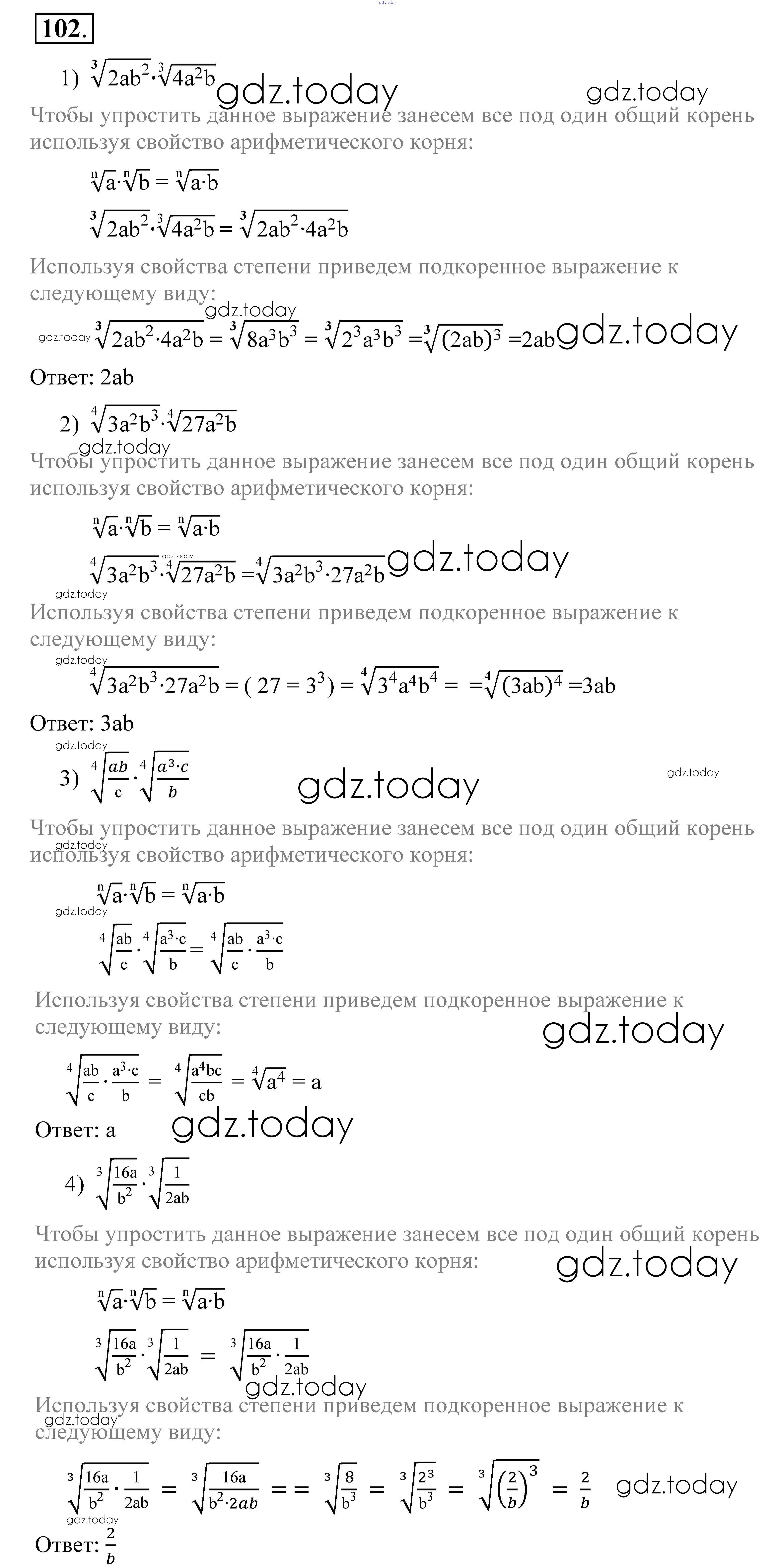 На страницах сайта gdz.today вы найдете учебный и вспомогательный материал, направленный на улучшения знаний школьной программы. ГДЗ - онлайн мир знаний Решение к упражнениям 102 Учебнику по Алгебре для 9 класса Алимов, Колягин Просвещение 2014