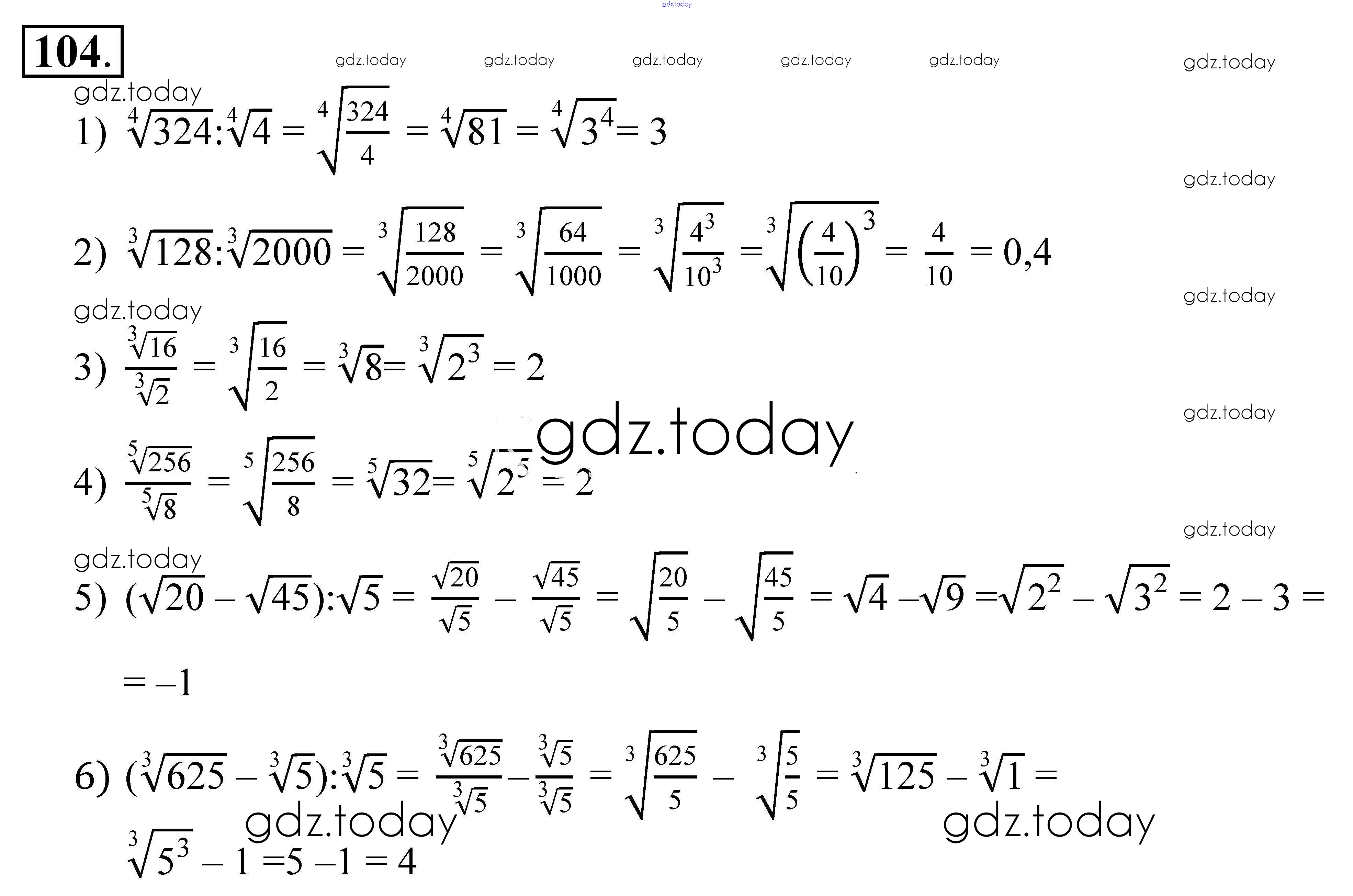 Ответы к Решение к упражнениям 104 Учебнику по Алгебре для 9 класса Алимов, Колягин Просвещение 2014