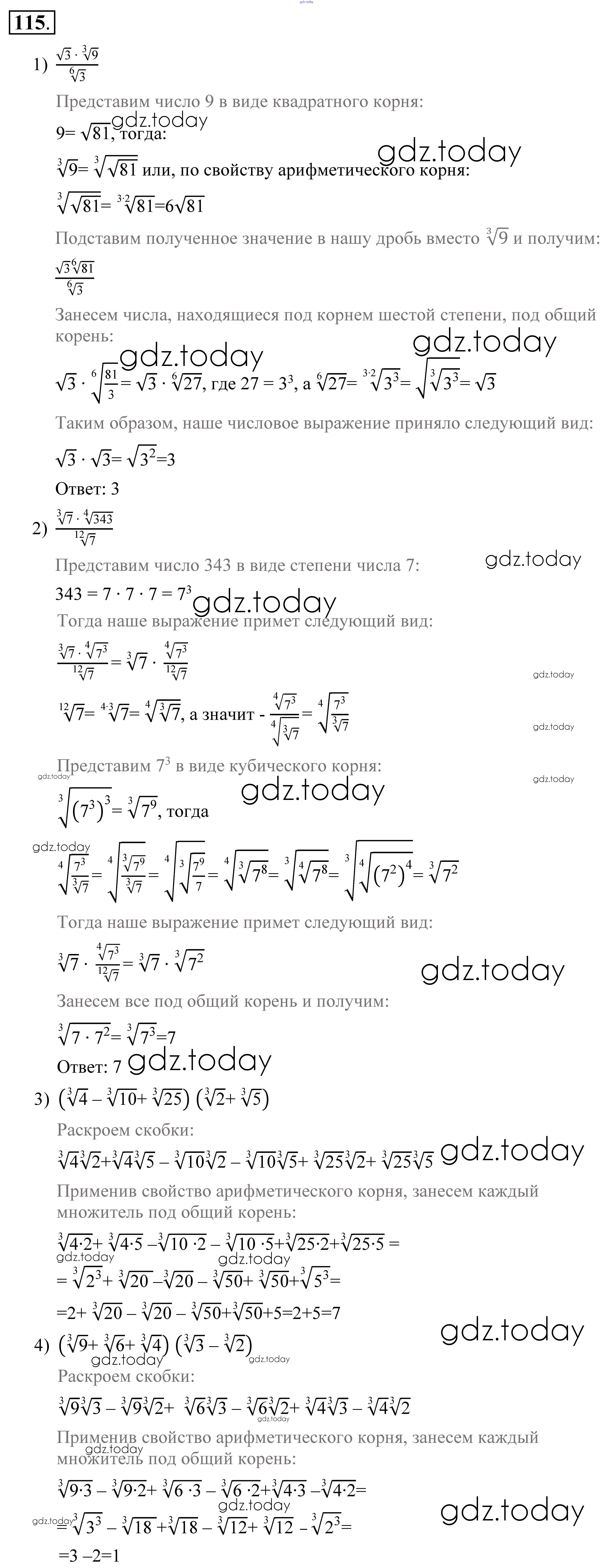 На страницах сайта gdz.today вы найдете учебный и вспомогательный материал, направленный на улучшения знаний школьной программы. ГДЗ - онлайн мир знаний Решение к упражнениям 115 Учебнику по Алгебре для 9 класса Алимов, Колягин Просвещение 2014