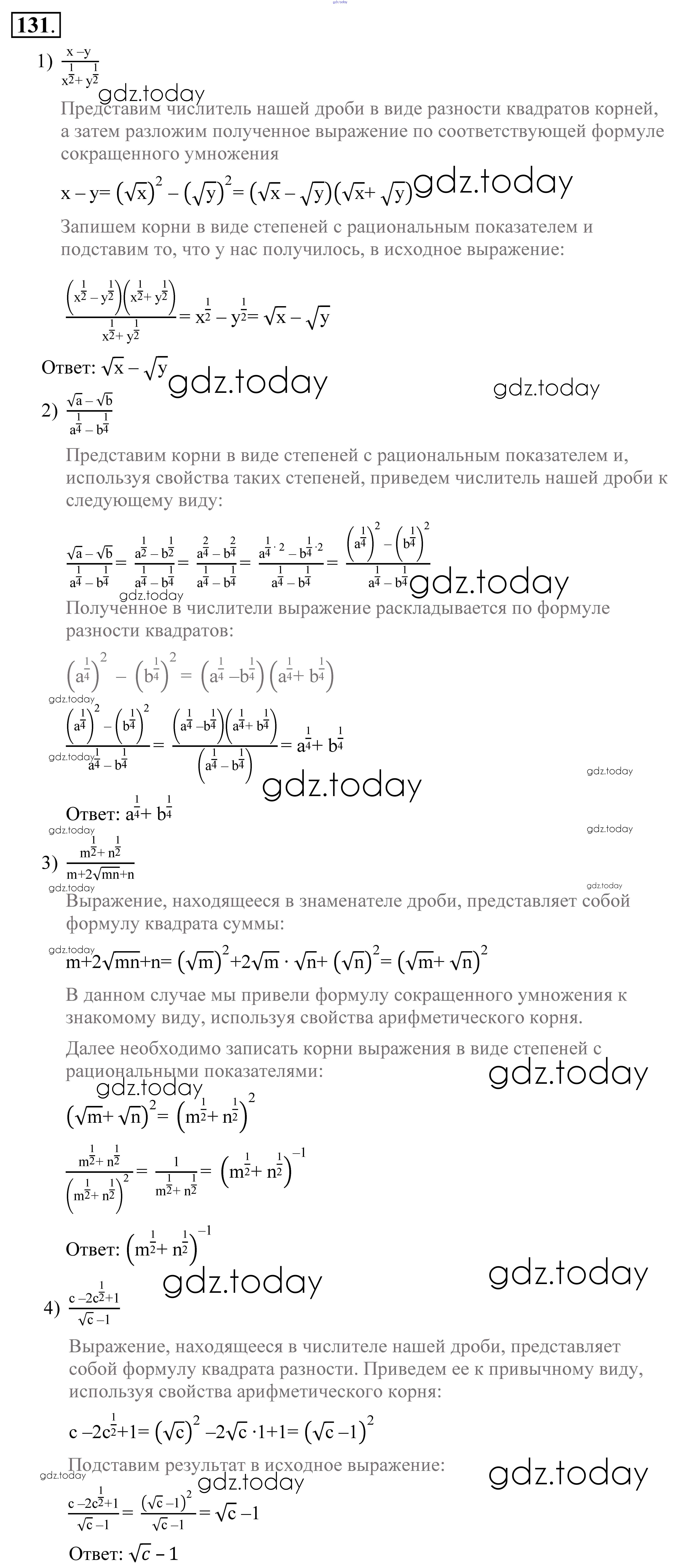 Ответы к Решение к упражнениям 131 Учебнику по Алгебре для 9 класса Алимов, Колягин Просвещение 2014