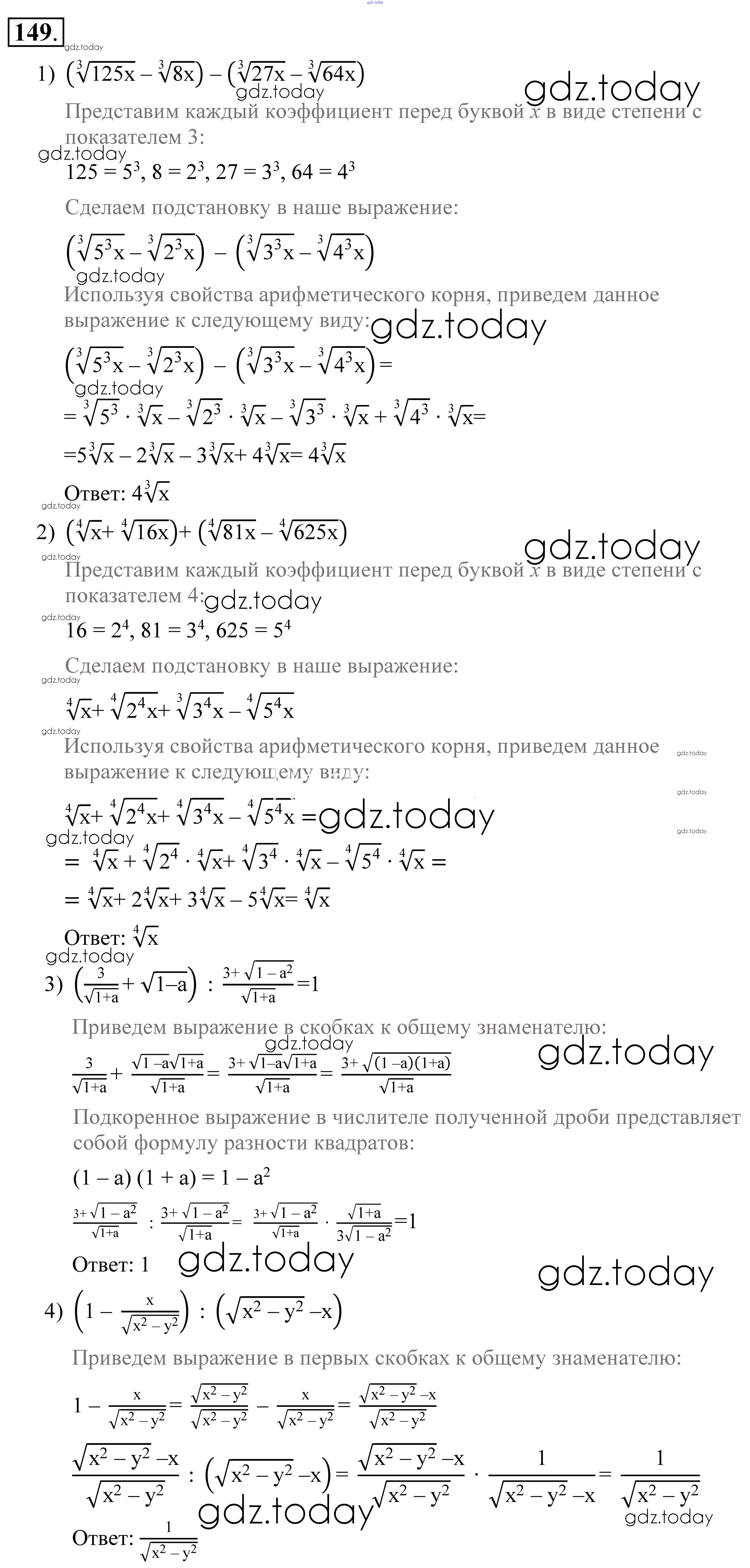 Ответы к Решение к упражнениям 149 Учебнику по Алгебре для 9 класса Алимов, Колягин Просвещение 2014