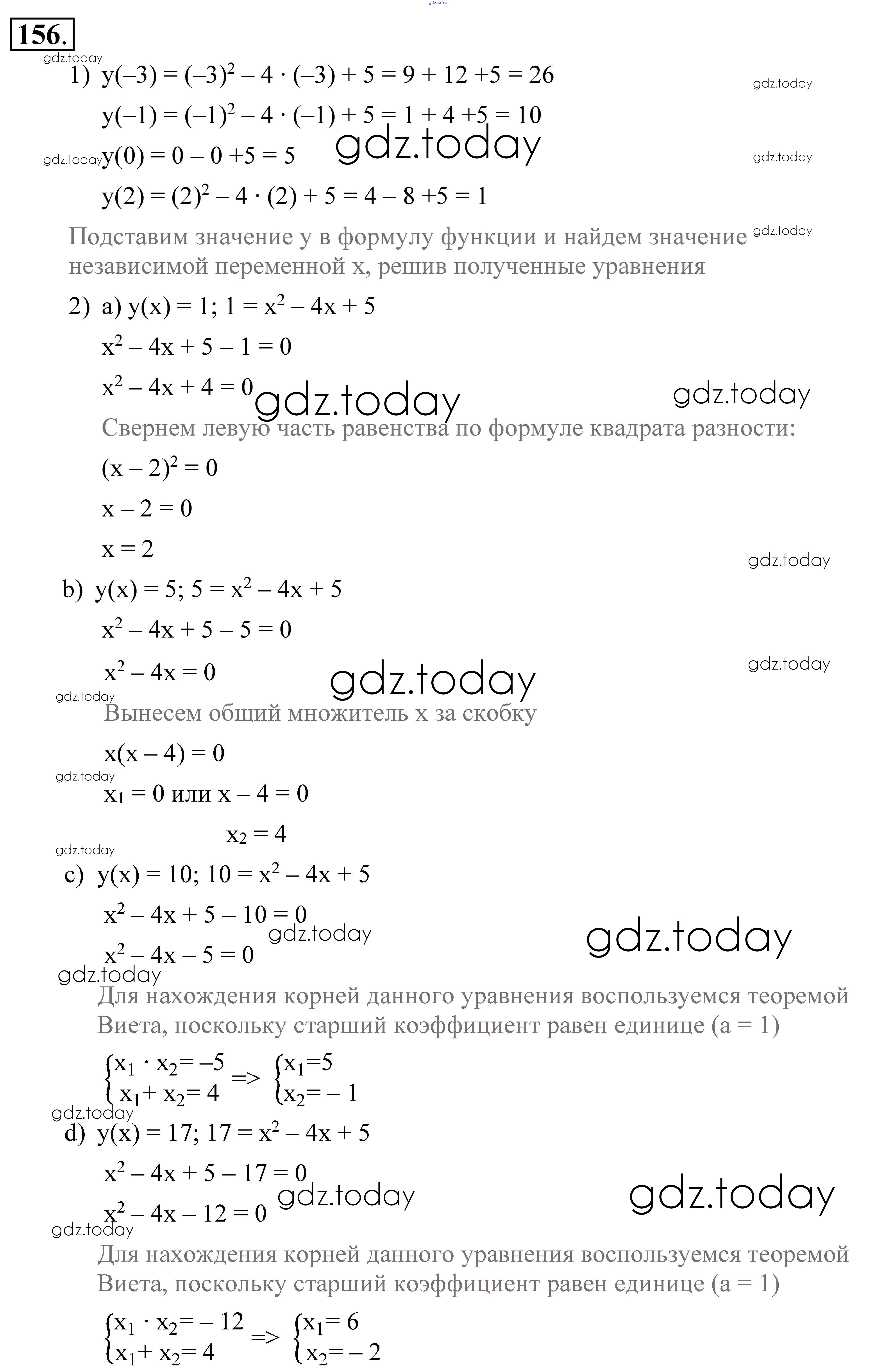 Ответы к Решение к упражнениям 156 Учебнику по Алгебре для 9 класса Алимов, Колягин Просвещение 2014