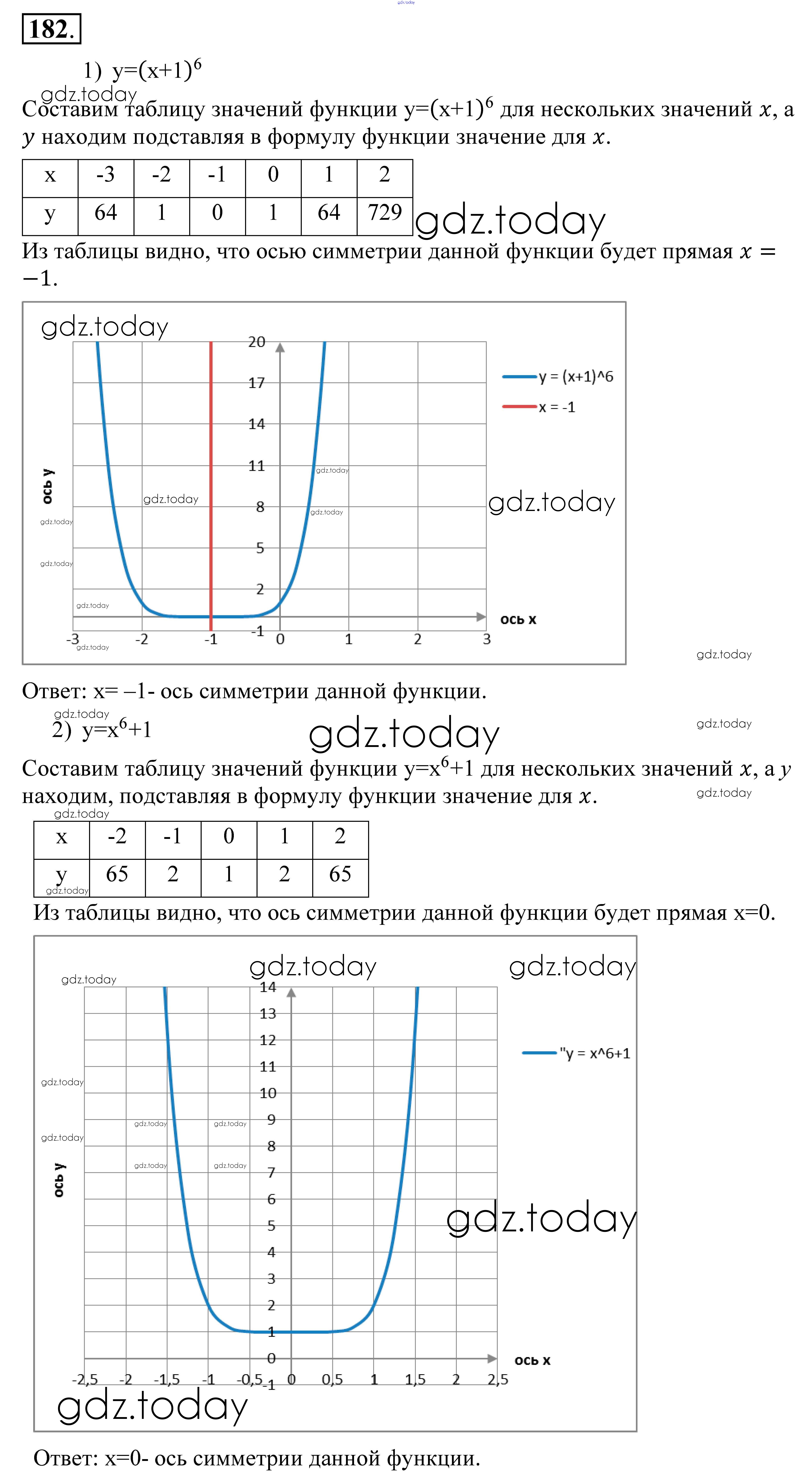 Ответы к Решение к упражнениям 182 Учебнику по Алгебре для 9 класса Алимов, Колягин Просвещение 2014