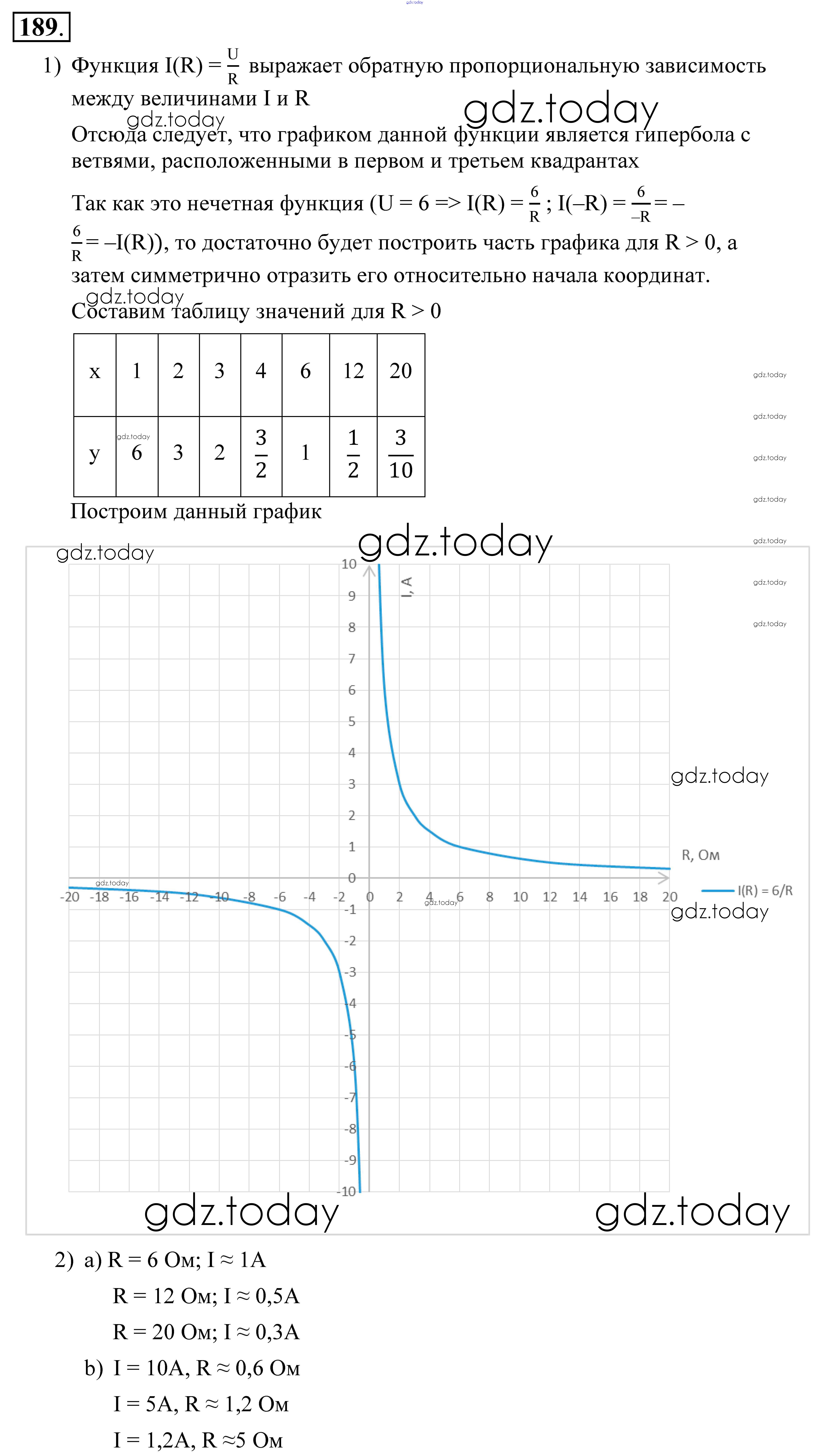 Ответы к Решение к упражнениям 189 Учебнику по Алгебре для 9 класса Алимов, Колягин Просвещение 2014