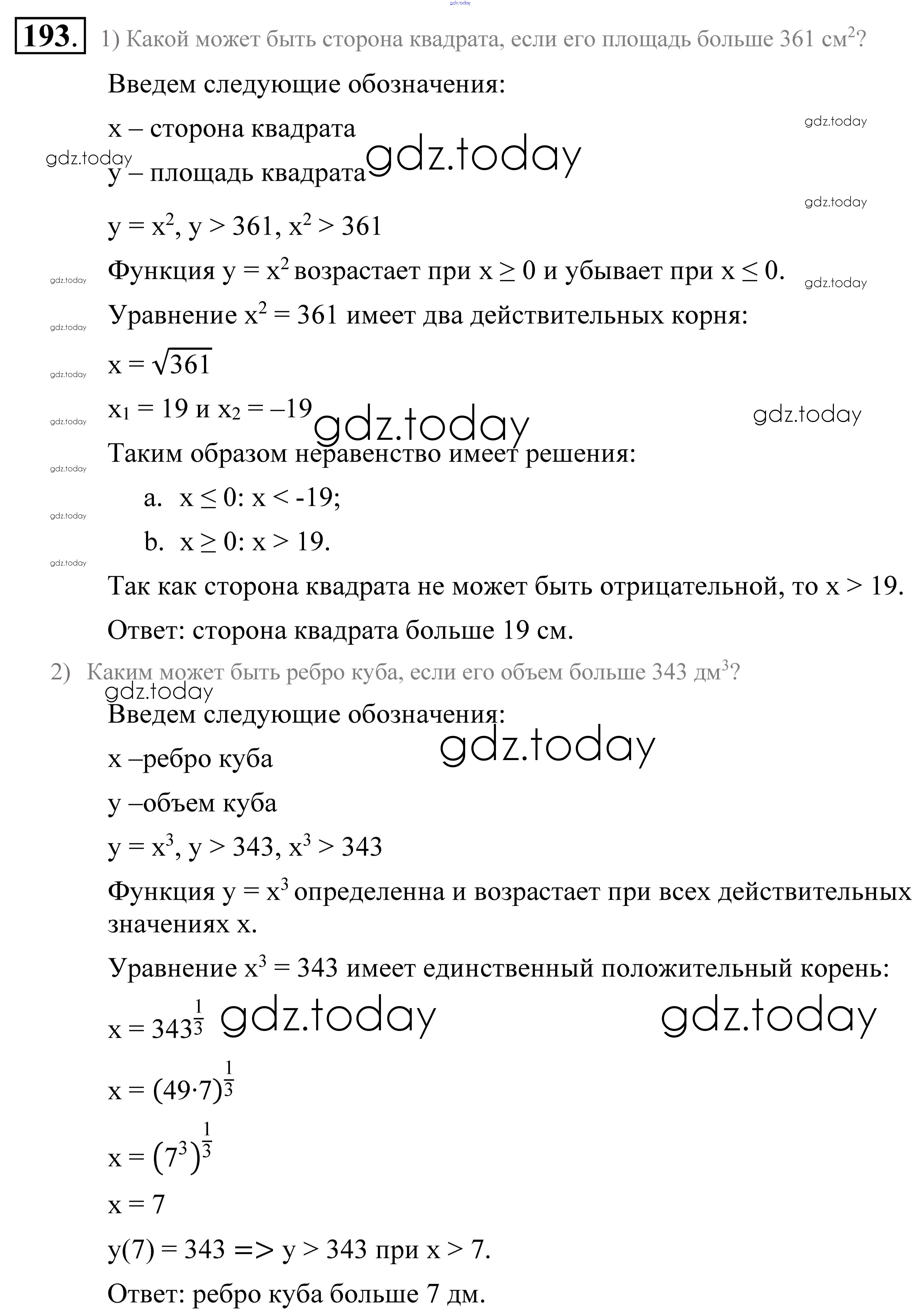 На страницах сайта gdz.today вы найдете учебный и вспомогательный материал, направленный на улучшения знаний школьной программы. ГДЗ - онлайн мир знаний Решение к упражнениям 193 Учебнику по Алгебре для 9 класса Алимов, Колягин Просвещение 2014