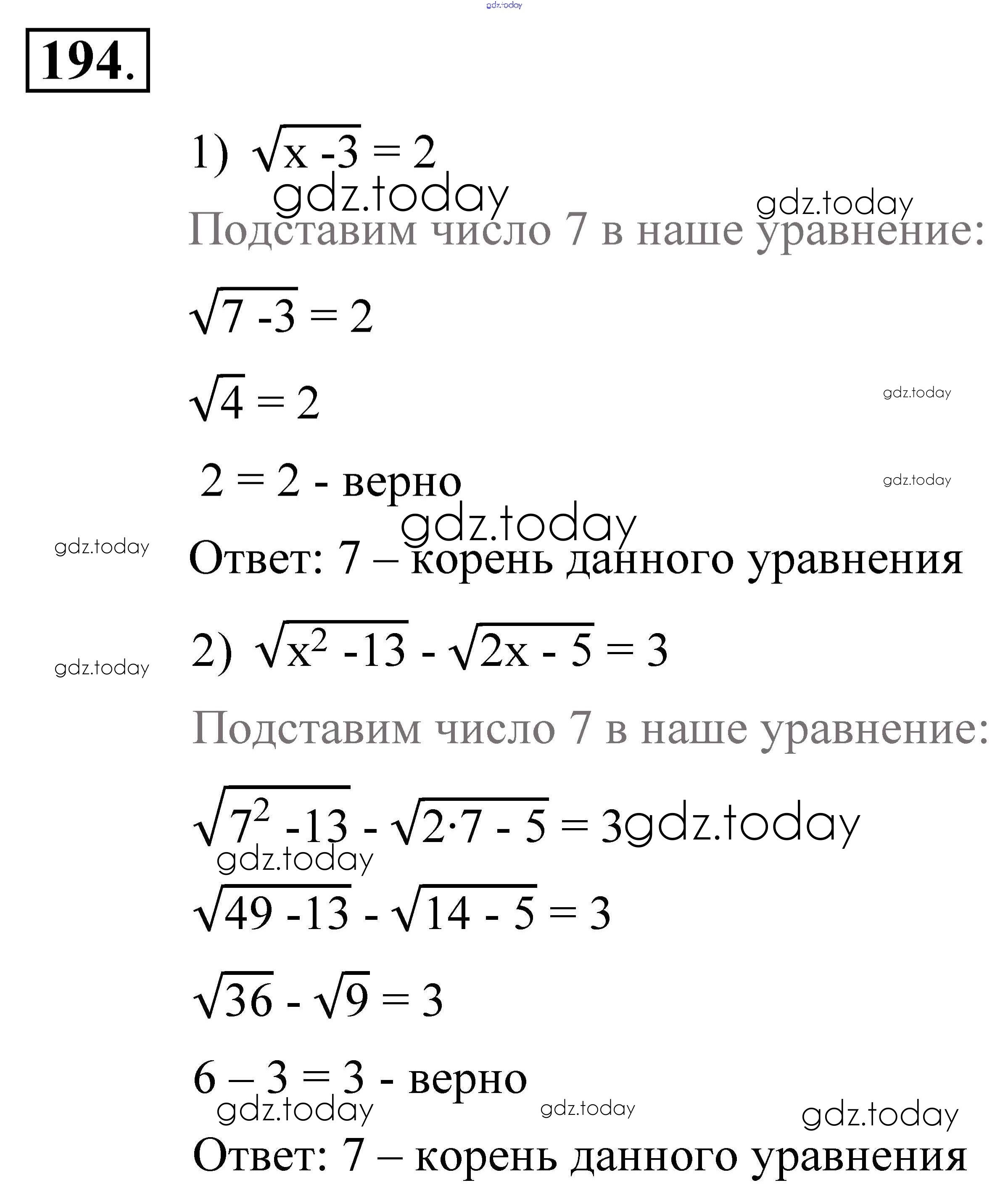 Ответы к Решение к упражнениям 194 Учебнику по Алгебре для 9 класса Алимов, Колягин Просвещение 2014
