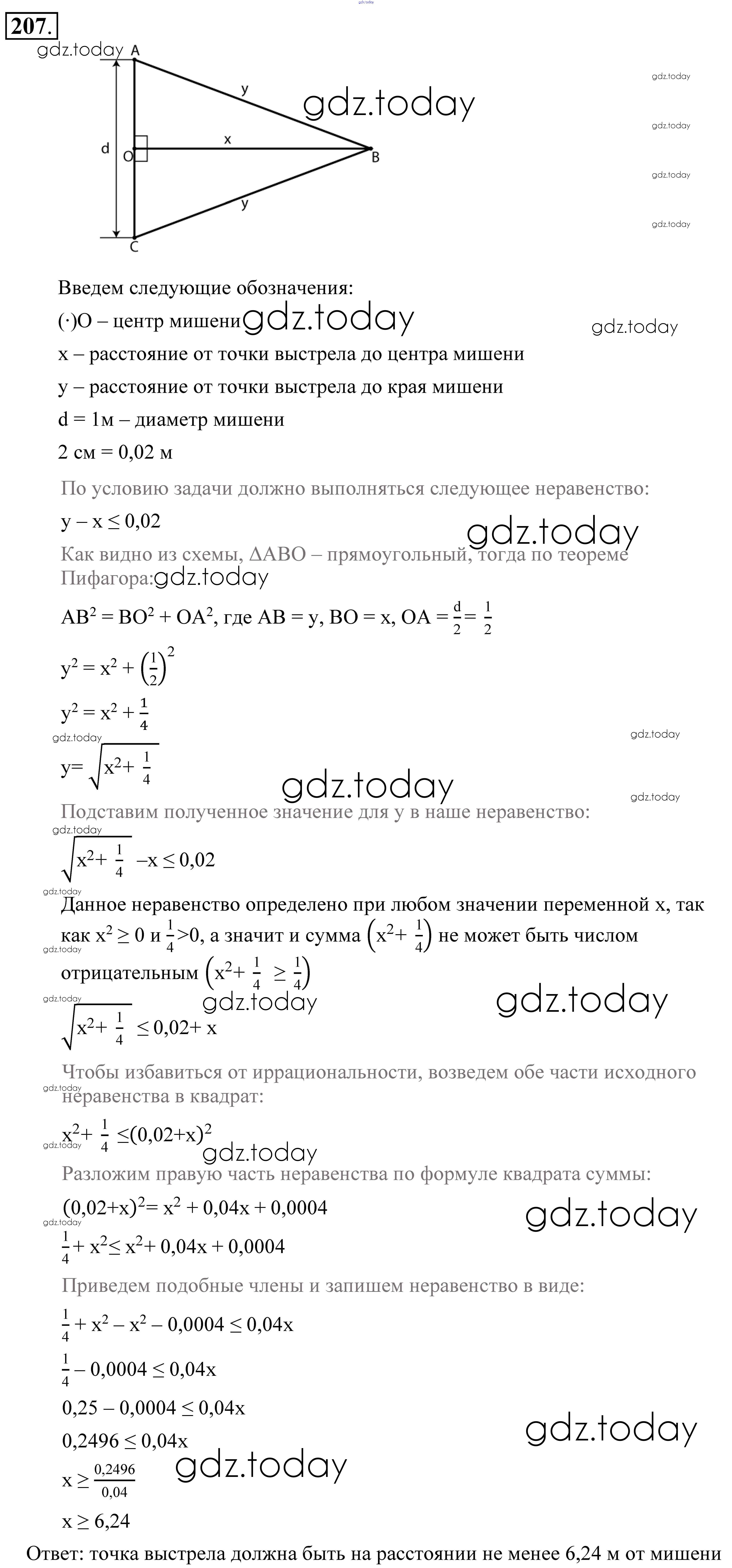 Ответы к Решение к упражнениям 207 Учебнику по Алгебре для 9 класса Алимов, Колягин Просвещение 2014