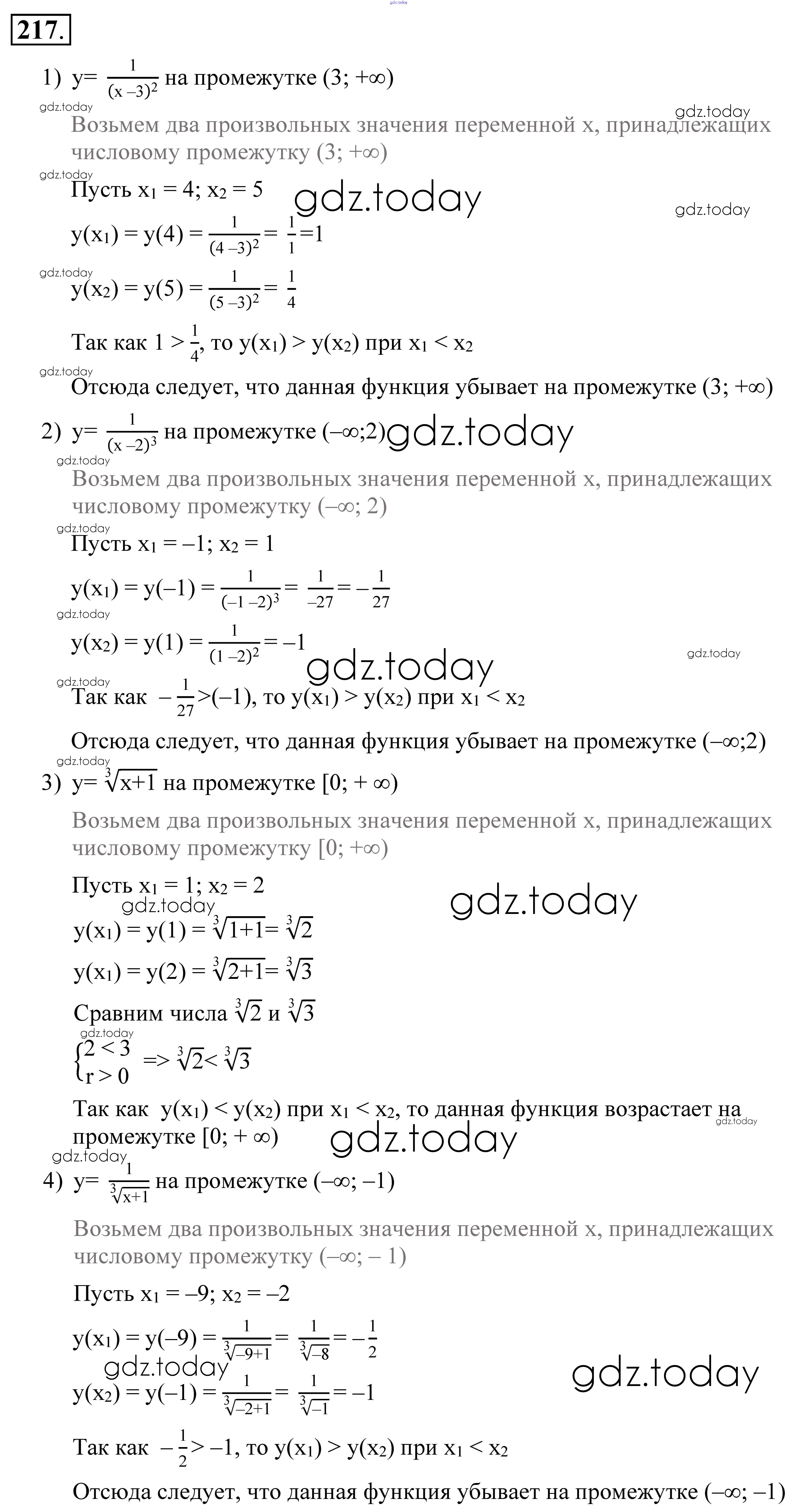 Ответы к Решение к упражнениям 217 Учебнику по Алгебре для 9 класса Алимов, Колягин Просвещение 2014