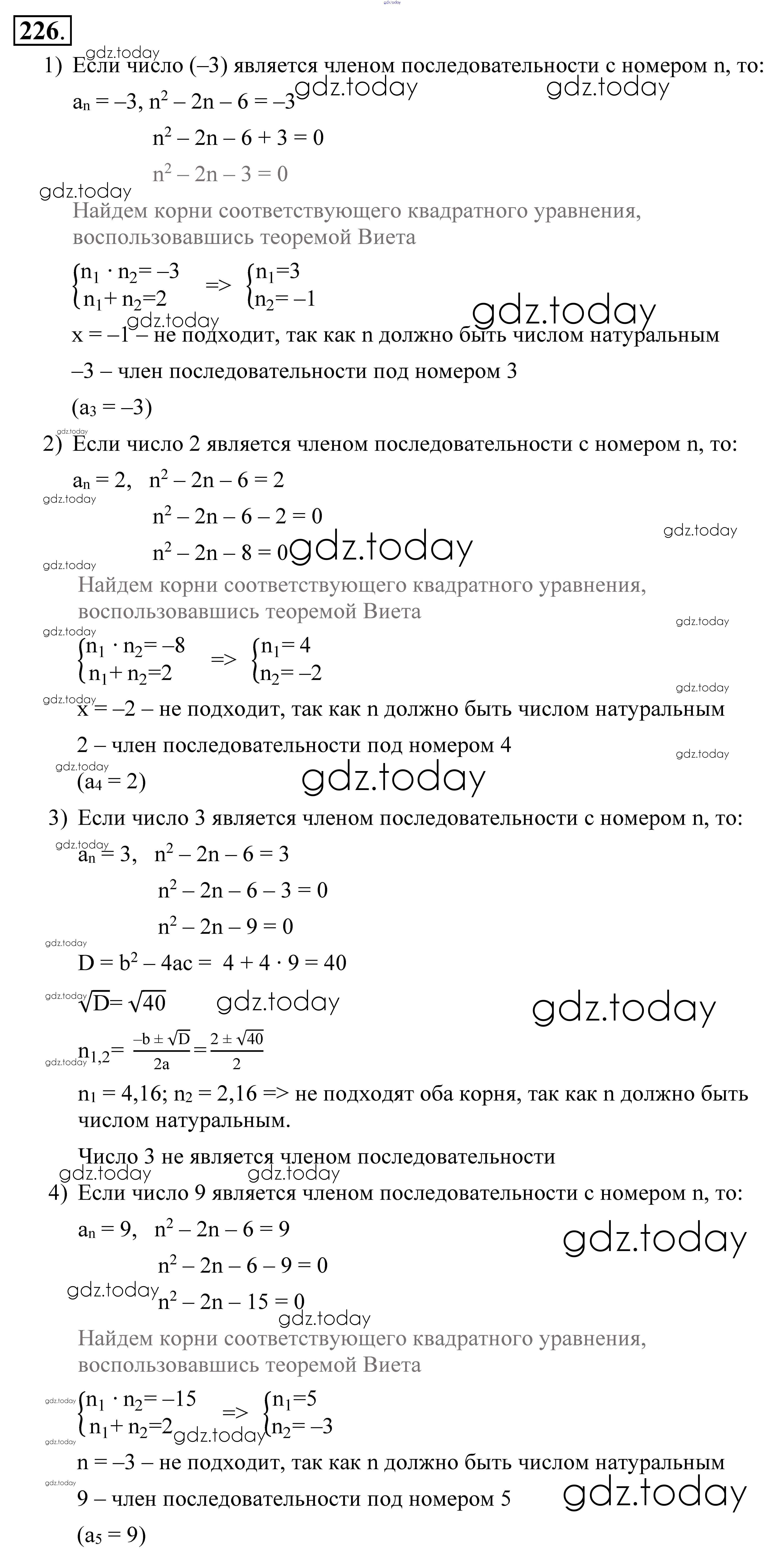 На страницах сайта gdz.today вы найдете учебный и вспомогательный материал, направленный на улучшения знаний школьной программы. ГДЗ - онлайн мир знаний Решение к упражнениям 226 Учебнику по Алгебре для 9 класса Алимов, Колягин Просвещение 2014