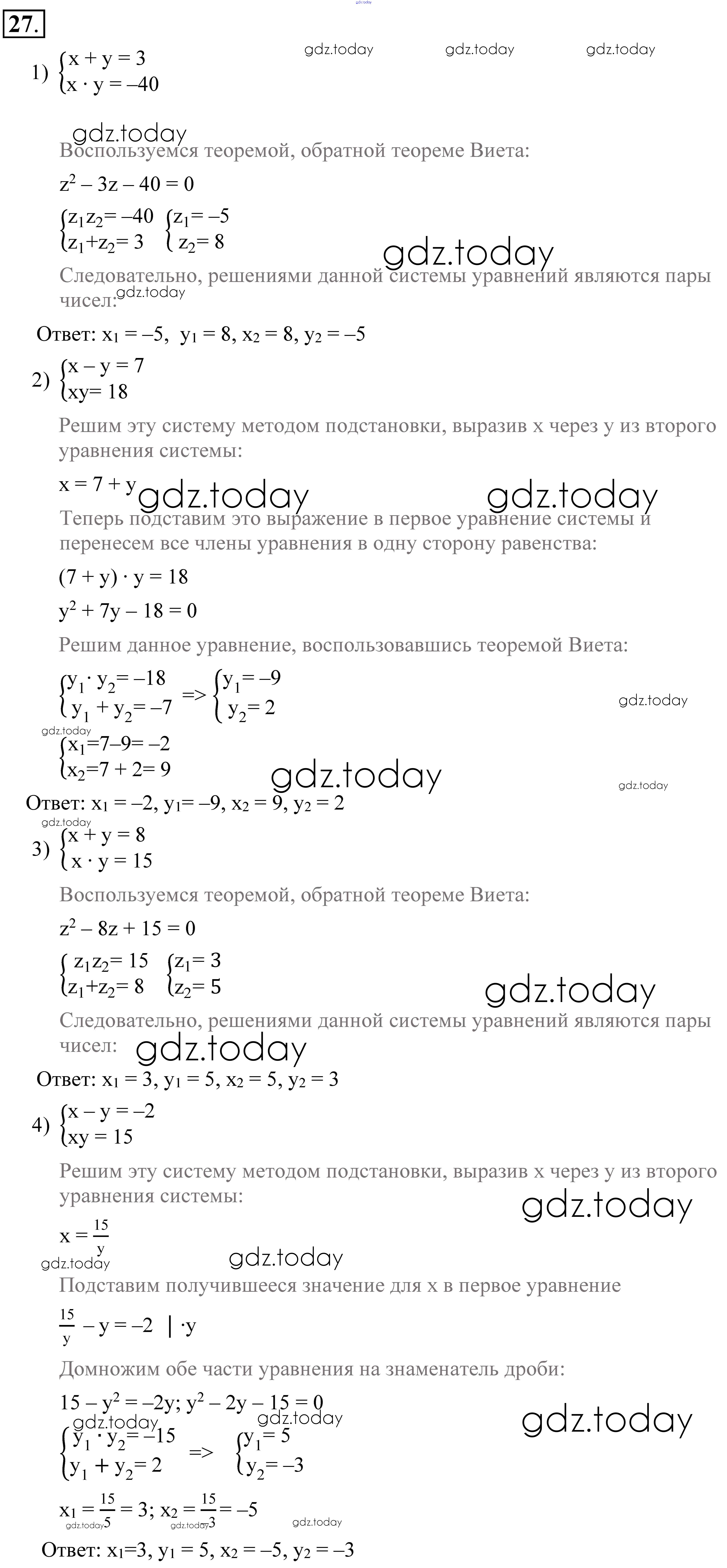 Ответы к Решение к упражнениям 27 Учебнику по Алгебре для 9 класса Алимов, Колягин Просвещение 2014