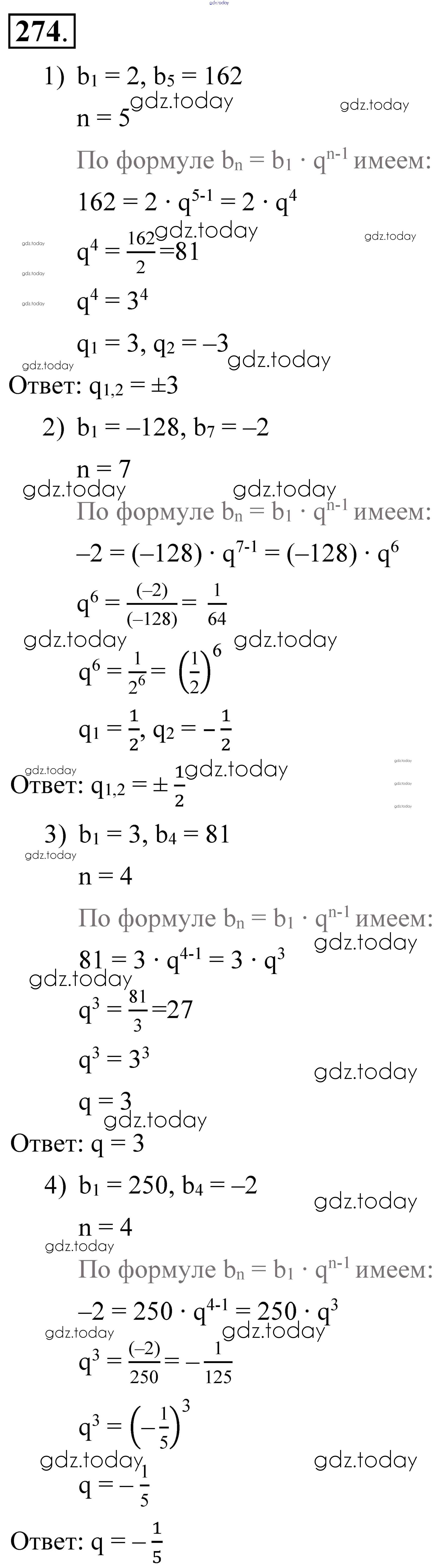 Ответы к Решение к упражнениям 274 Учебнику по Алгебре для 9 класса Алимов, Колягин Просвещение 2014