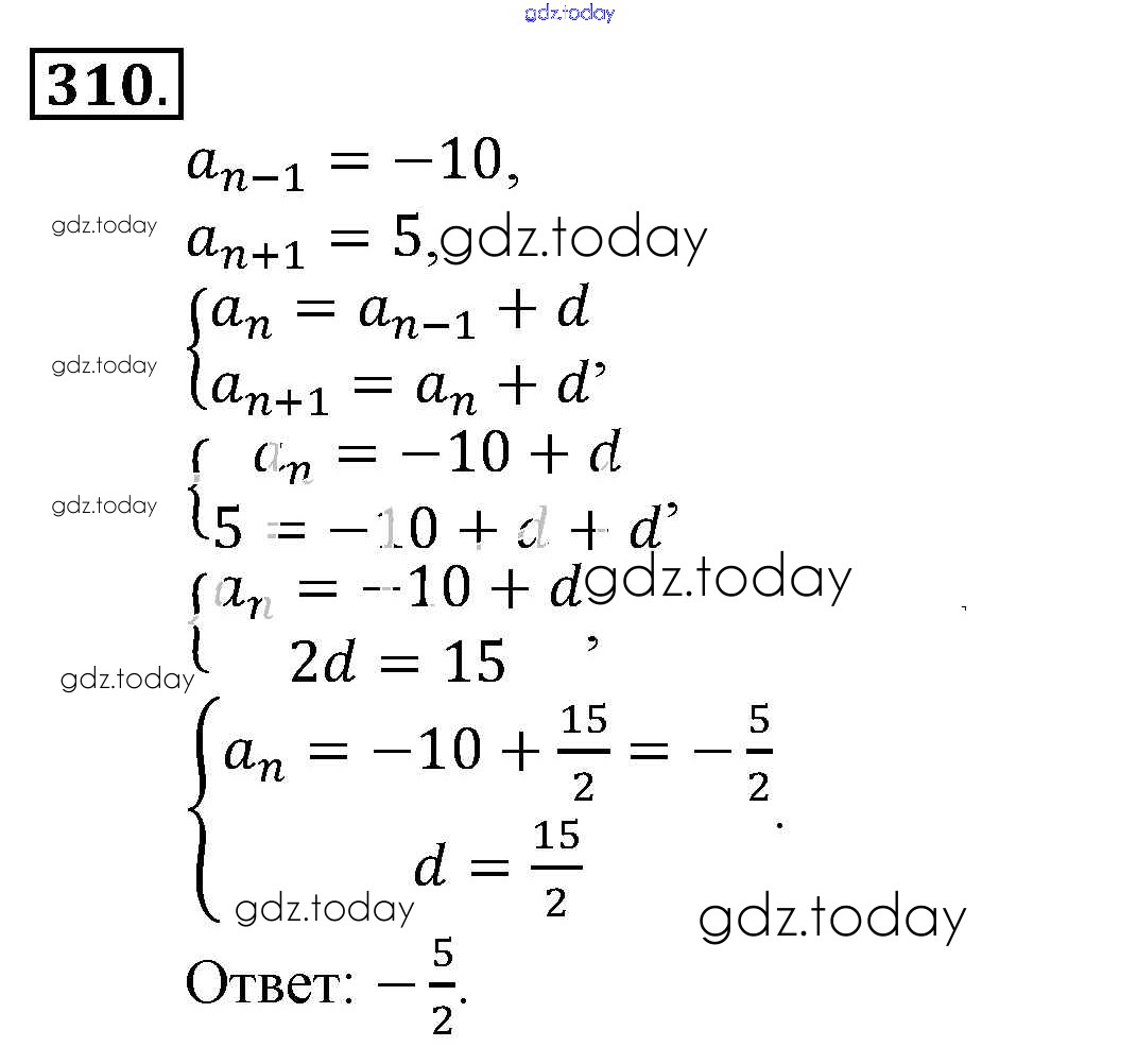 Ответы к Решение к упражнениям 310 Учебнику по Алгебре для 9 класса Алимов, Колягин Просвещение 2014