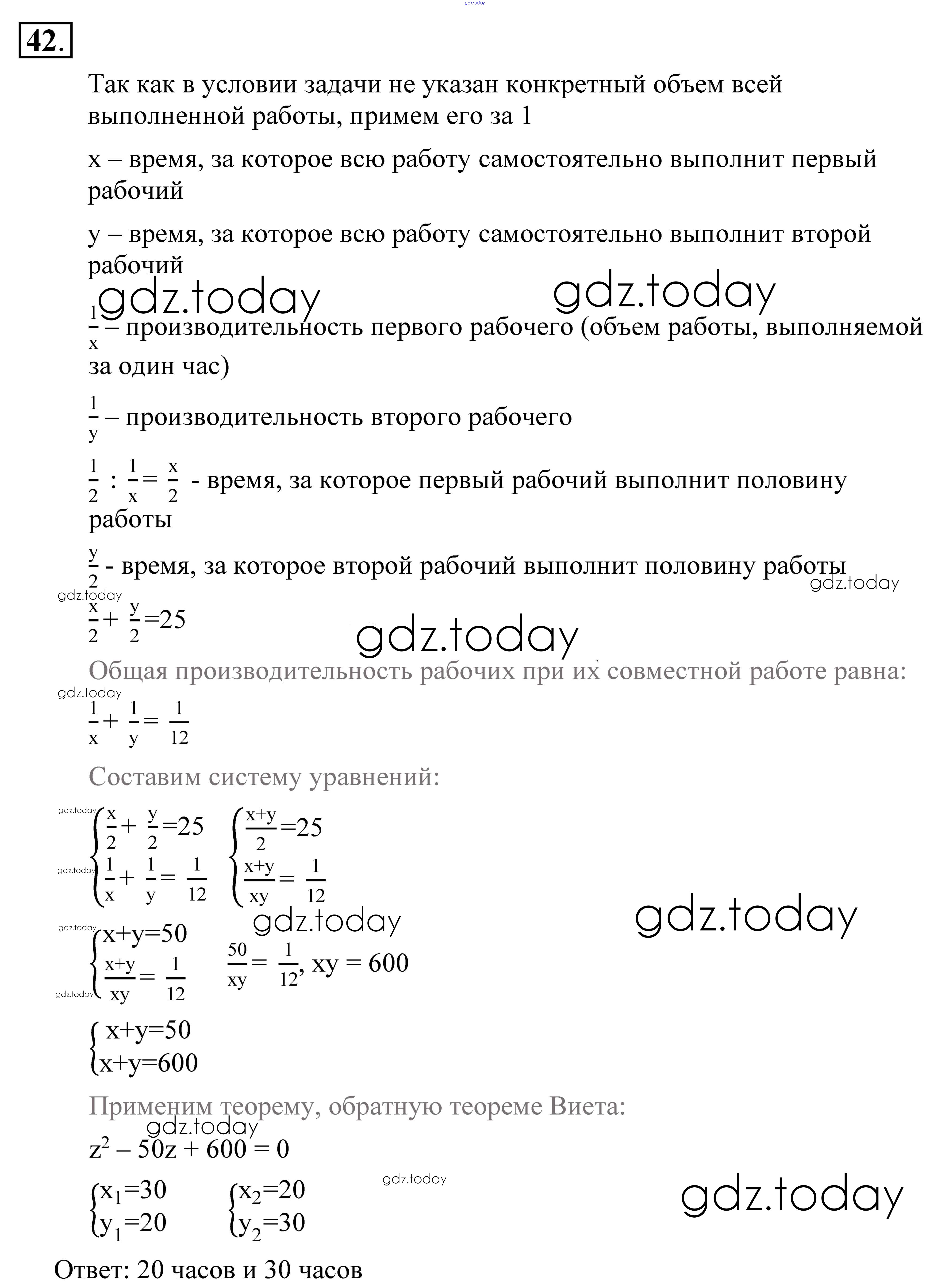 Ответы к Решение к упражнениям 42 Учебнику по Алгебре для 9 класса Алимов, Колягин Просвещение 2014