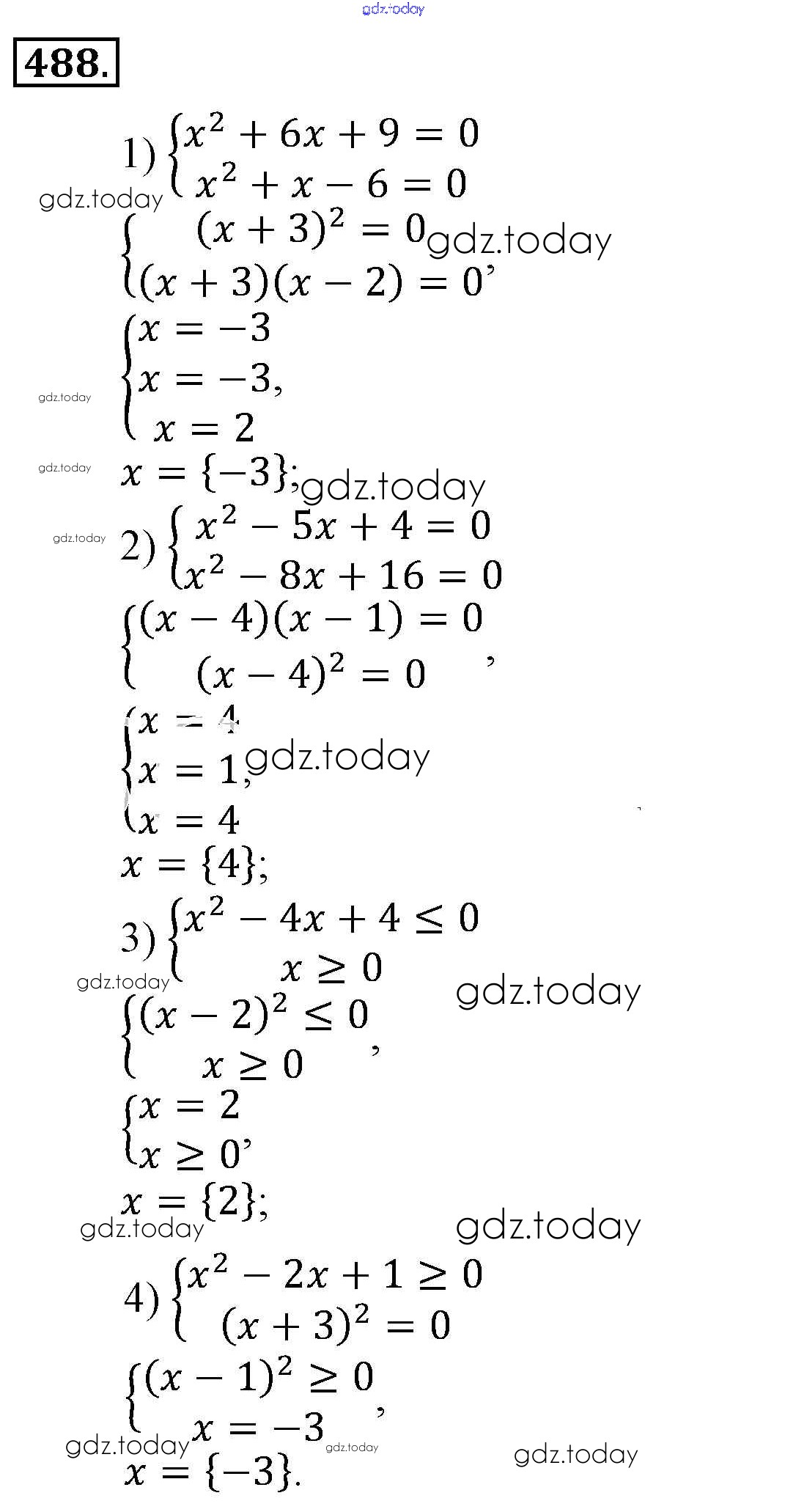 Ответы к Решение к упражнениям 488 Учебнику по Алгебре для 9 класса Алимов, Колягин Просвещение 2014