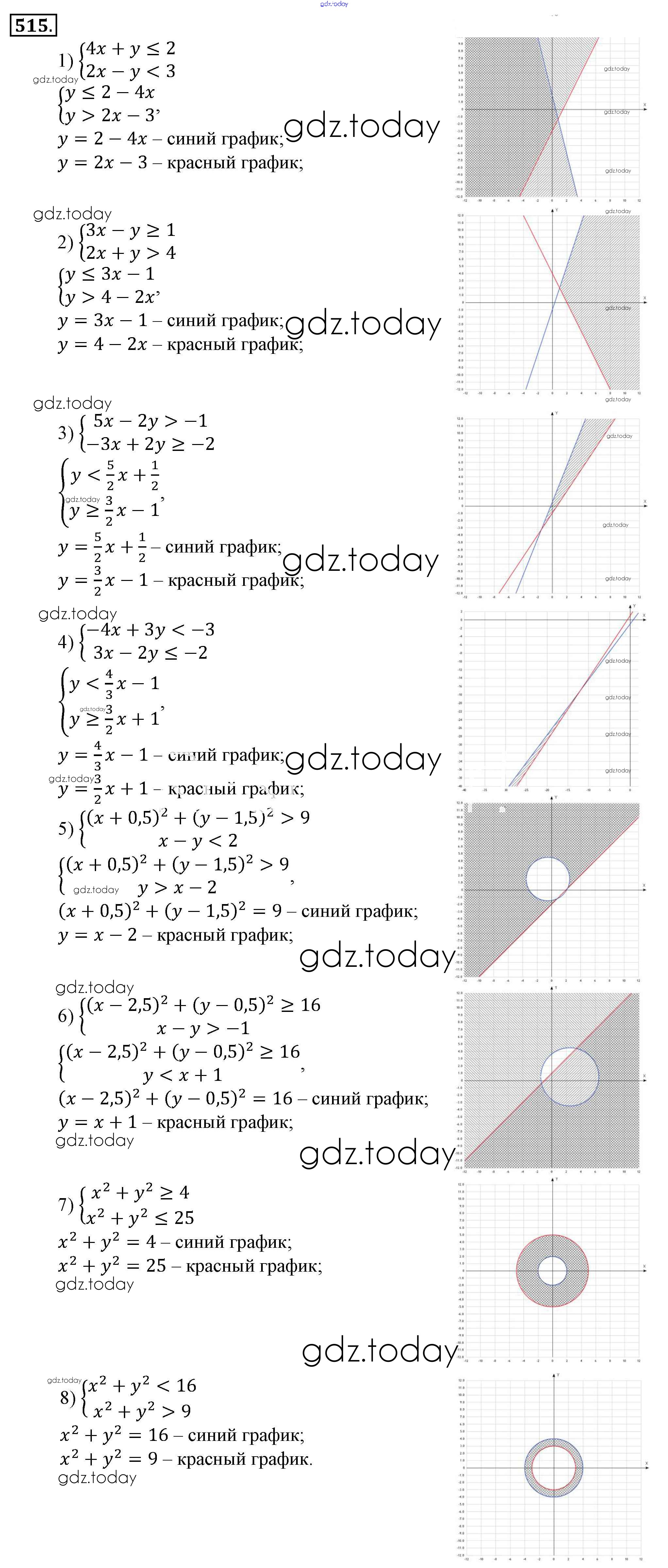 Ответы к Решение к упражнениям 515 Учебнику по Алгебре для 9 класса Алимов, Колягин Просвещение 2014