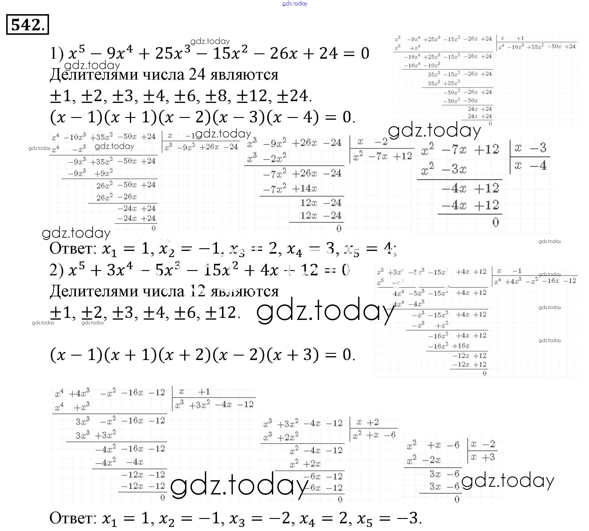 Ответы к Решение к упражнениям 542 Учебнику по Алгебре для 9 класса Алимов, Колягин Просвещение 2014