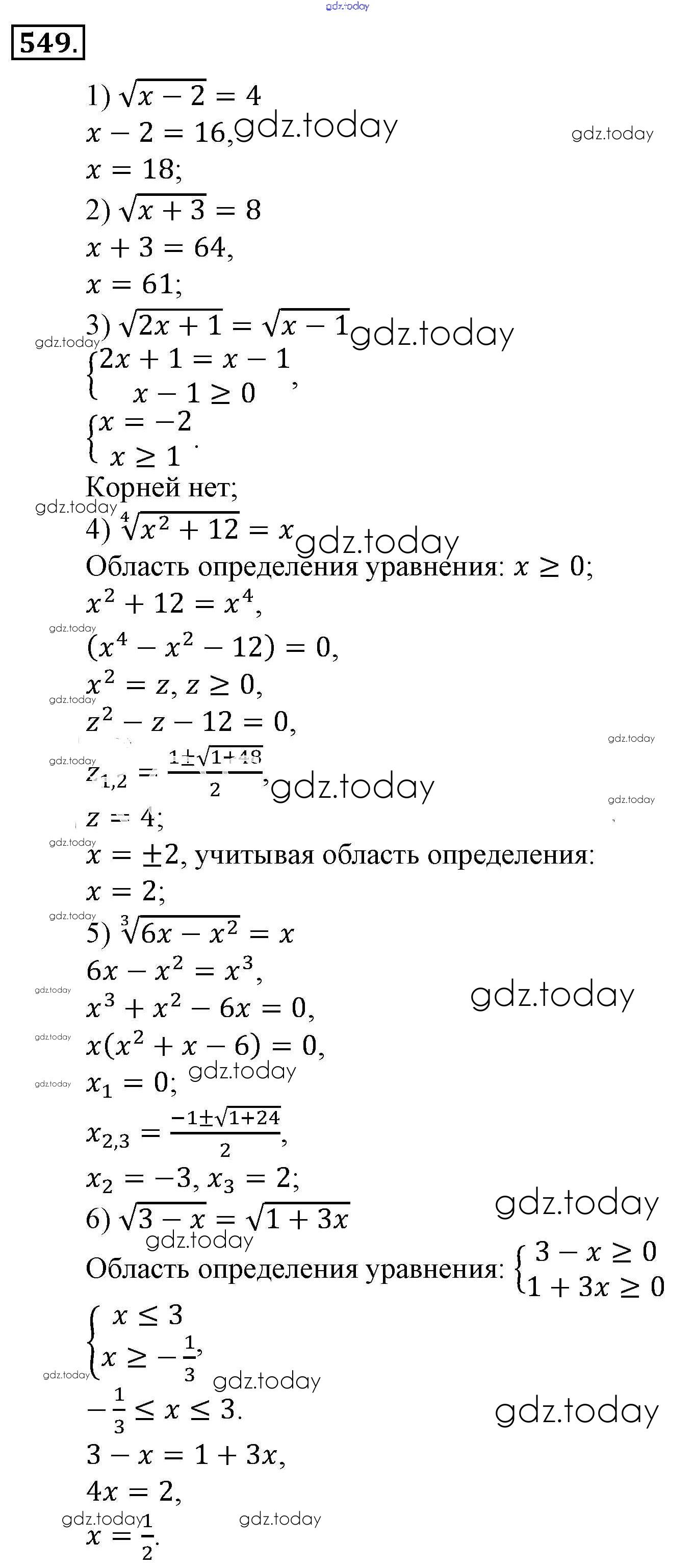Ответы к Решение к упражнениям 549 Учебнику по Алгебре для 9 класса Алимов, Колягин Просвещение 2014