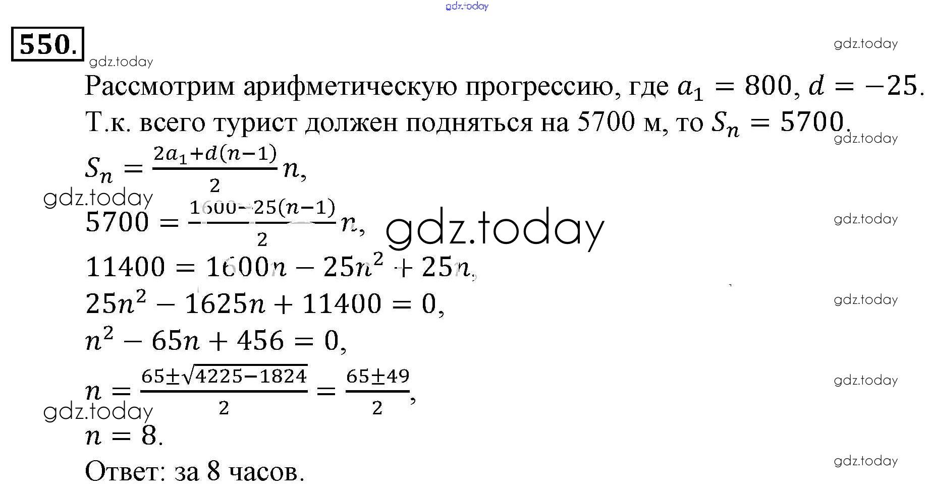 Ответы к Решение к упражнениям 550 Учебнику по Алгебре для 9 класса Алимов, Колягин Просвещение 2014