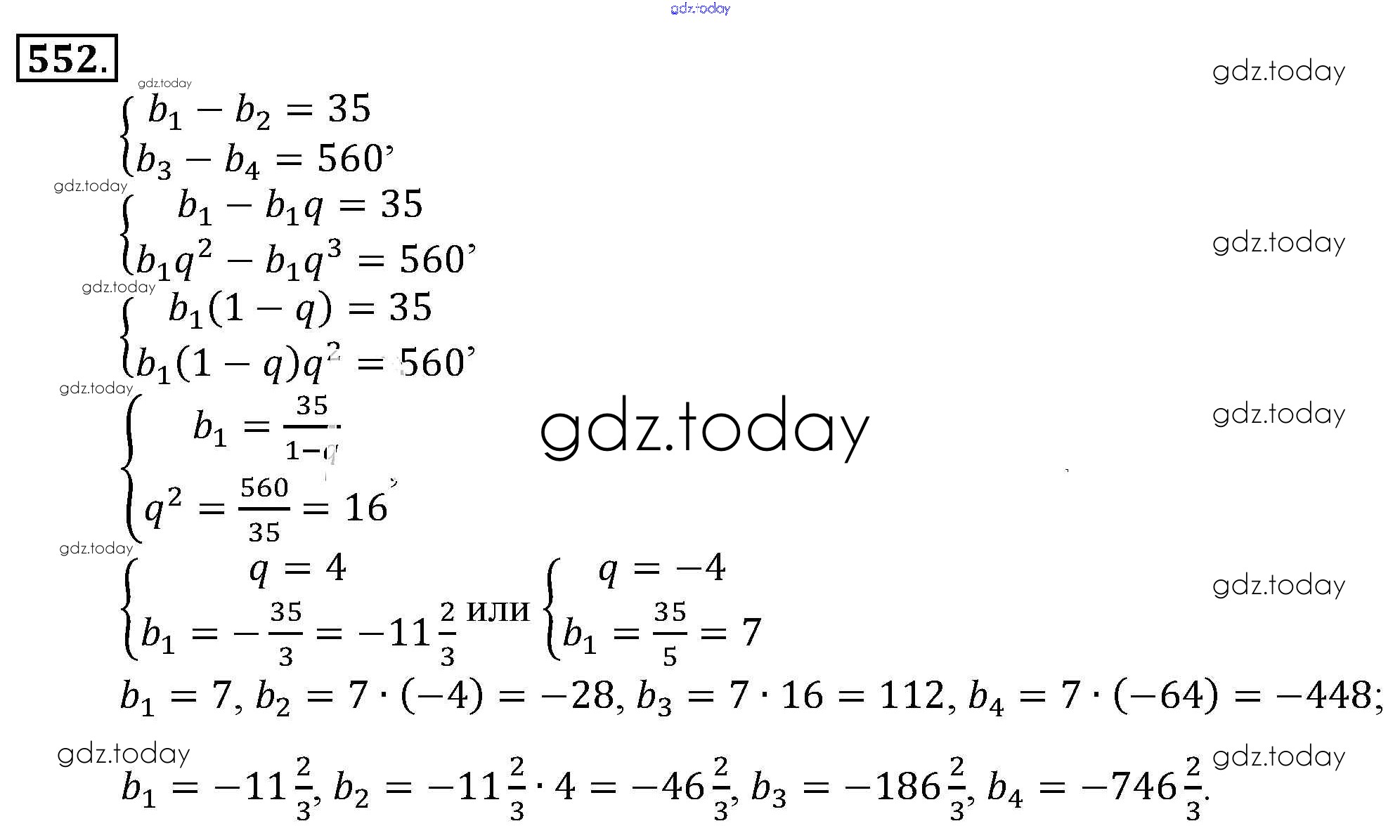 Ответы к Решение к упражнениям 552 Учебнику по Алгебре для 9 класса Алимов, Колягин Просвещение 2014