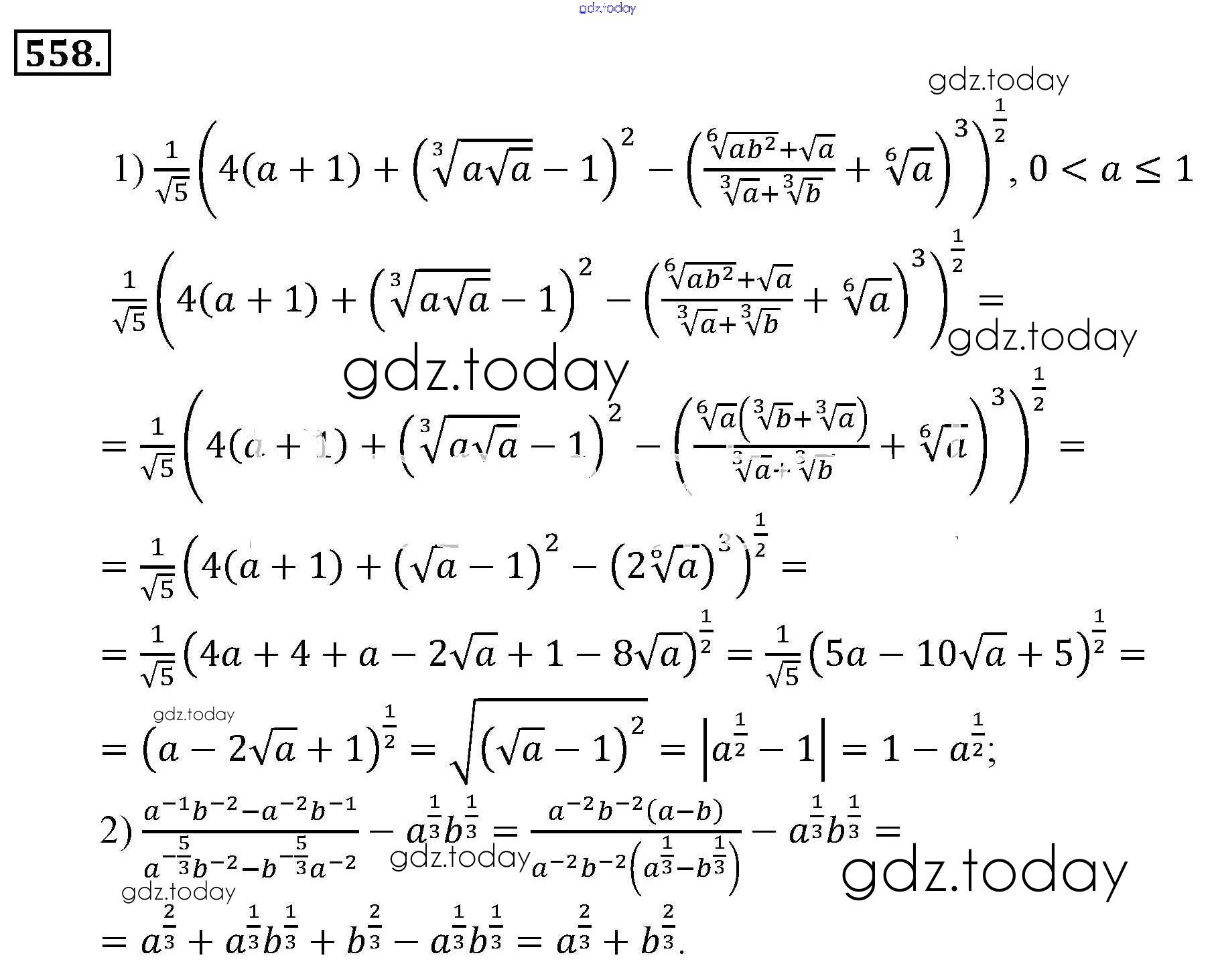На страницах сайта gdz.today вы найдете учебный и вспомогательный материал, направленный на улучшения знаний школьной программы. ГДЗ - онлайн мир знаний Решение к упражнениям 558 Учебнику по Алгебре для 9 класса Алимов, Колягин Просвещение 2014