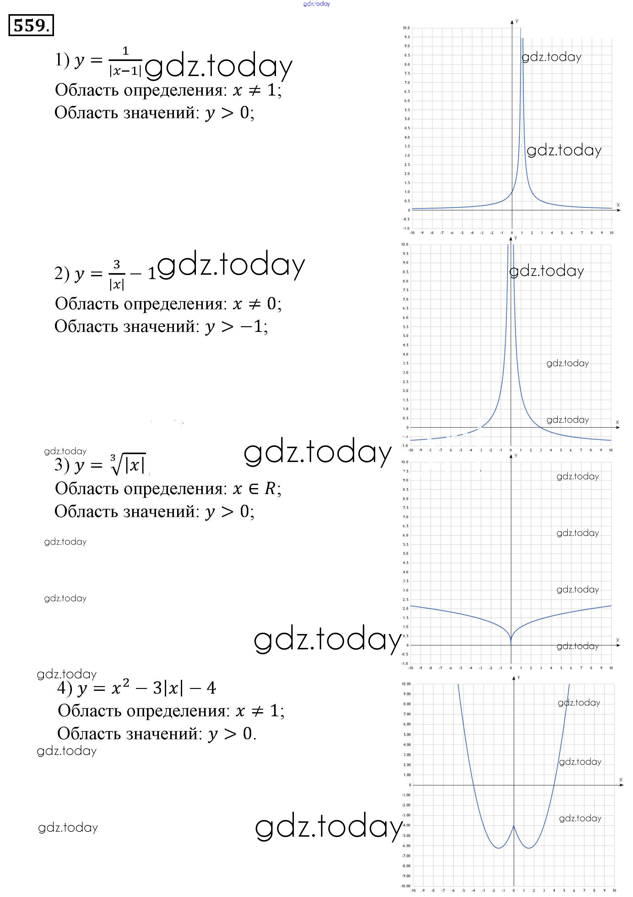 На страницах сайта gdz.today вы найдете учебный и вспомогательный материал, направленный на улучшения знаний школьной программы. ГДЗ - онлайн мир знаний Решение к упражнениям 559 Учебнику по Алгебре для 9 класса Алимов, Колягин Просвещение 2014