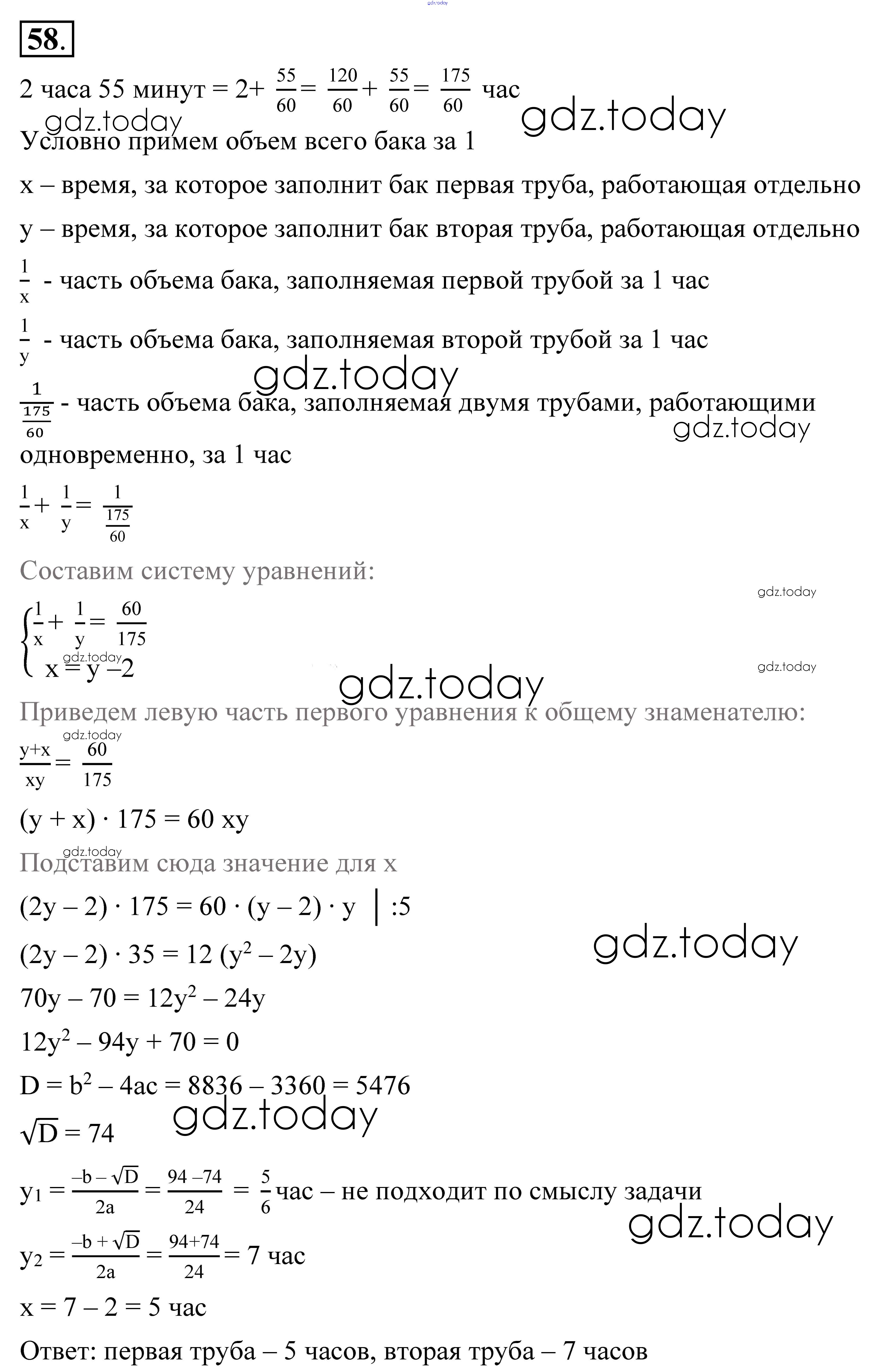 Ответы к Решение к упражнениям 58 Учебнику по Алгебре для 9 класса Алимов, Колягин Просвещение 2014