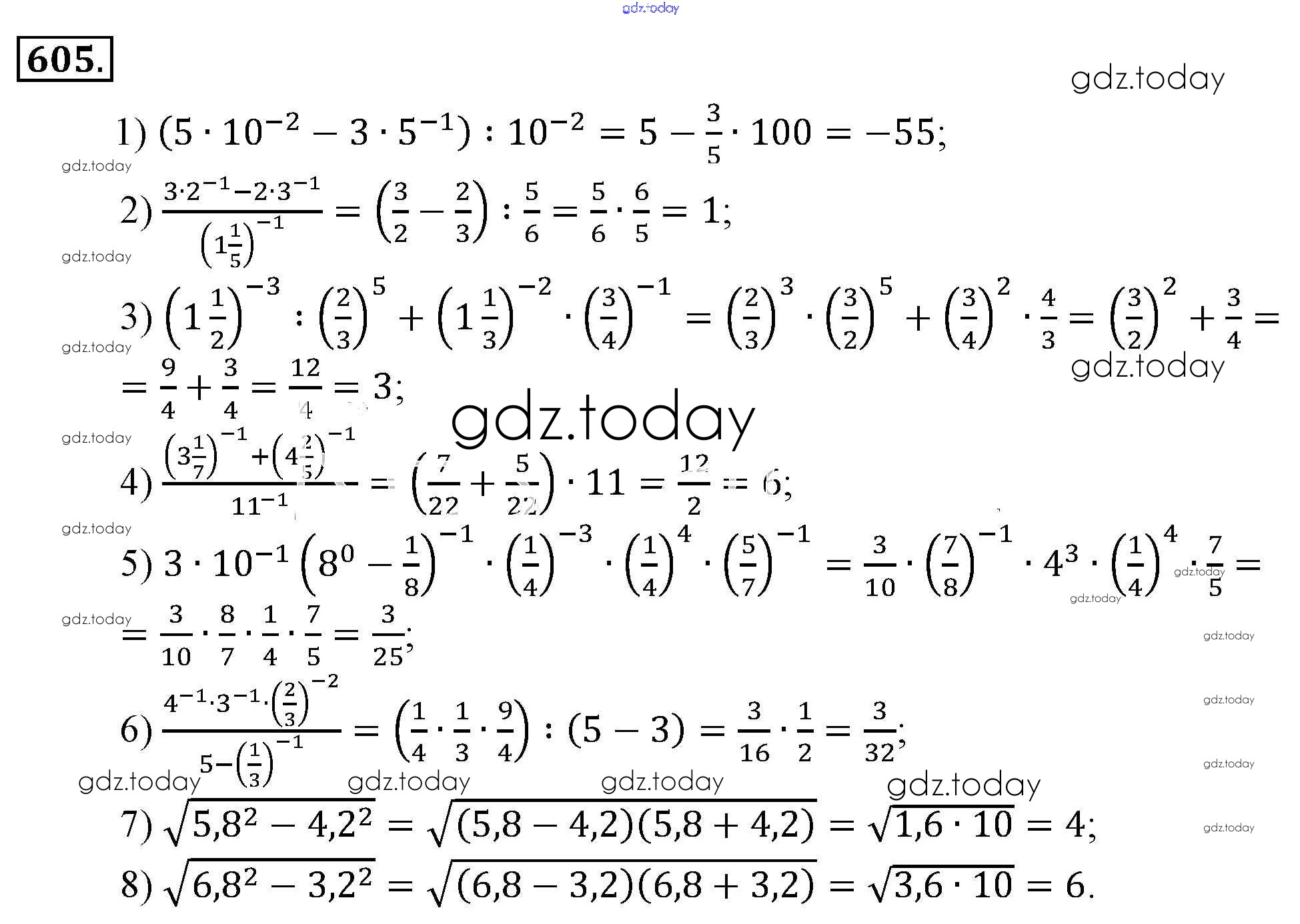 Ответы к Решение к упражнениям 605 Учебнику по Алгебре для 9 класса Алимов, Колягин Просвещение 2014