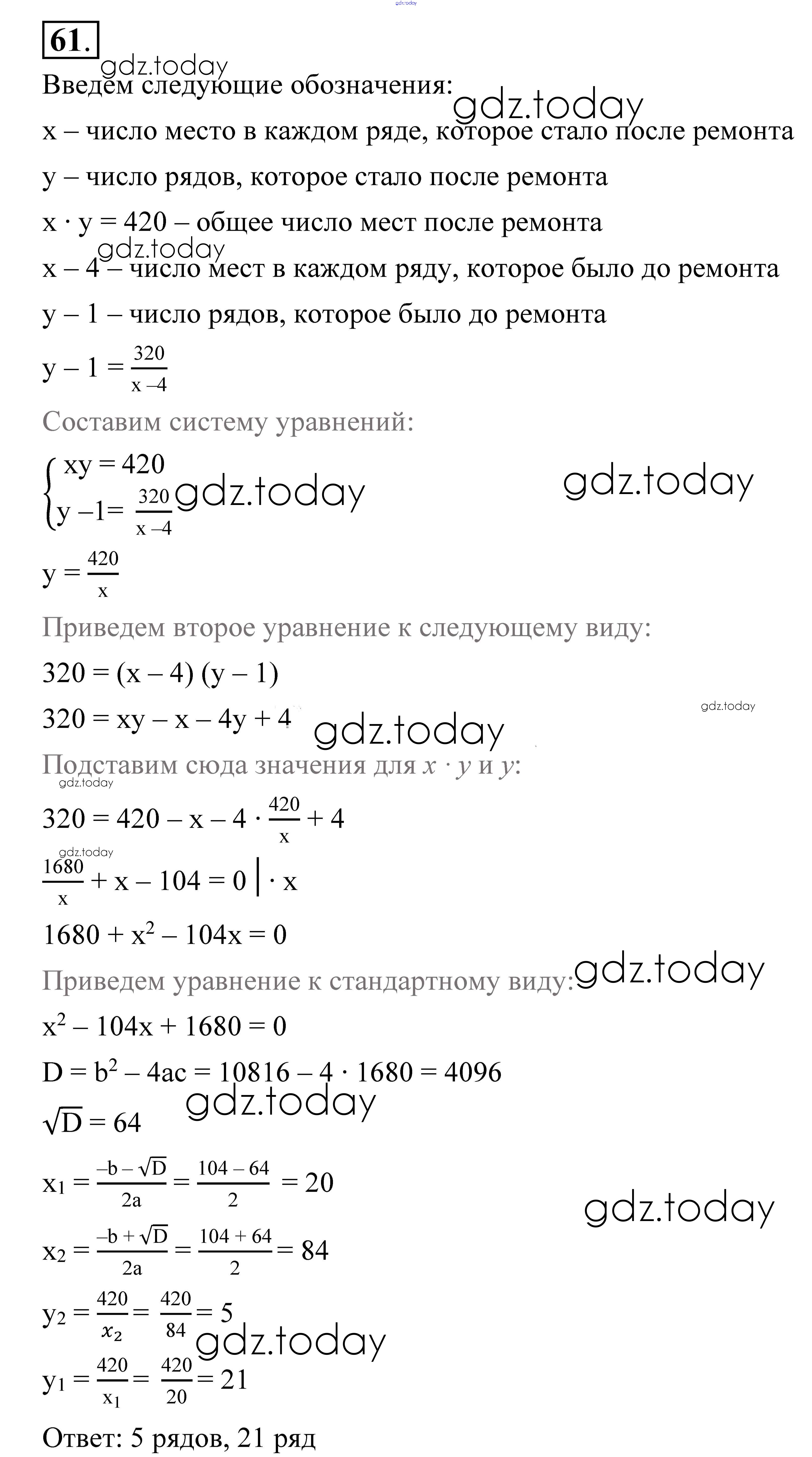 На страницах сайта gdz.today вы найдете учебный и вспомогательный материал, направленный на улучшения знаний школьной программы. ГДЗ - онлайн мир знаний Решение к упражнениям 61 Учебнику по Алгебре для 9 класса Алимов, Колягин Просвещение 2014