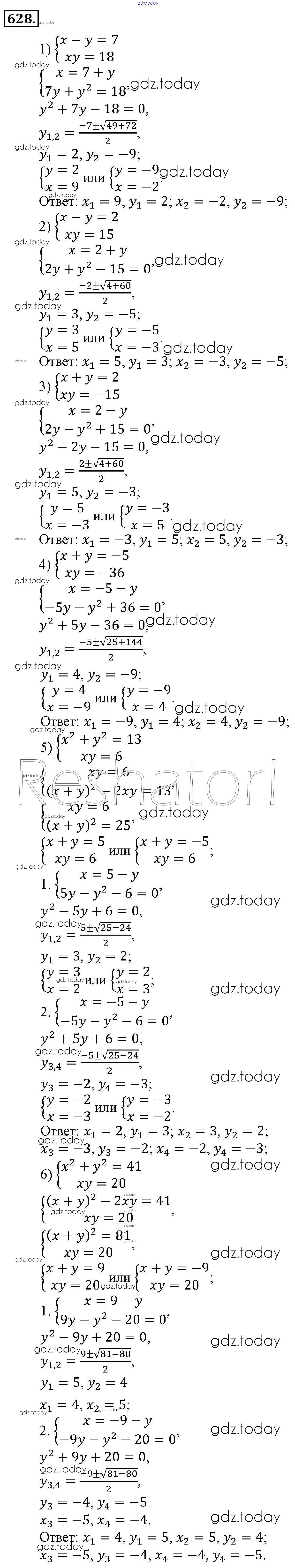 Ответы к Решение к упражнениям 628 Учебнику по Алгебре для 9 класса Алимов, Колягин Просвещение 2014