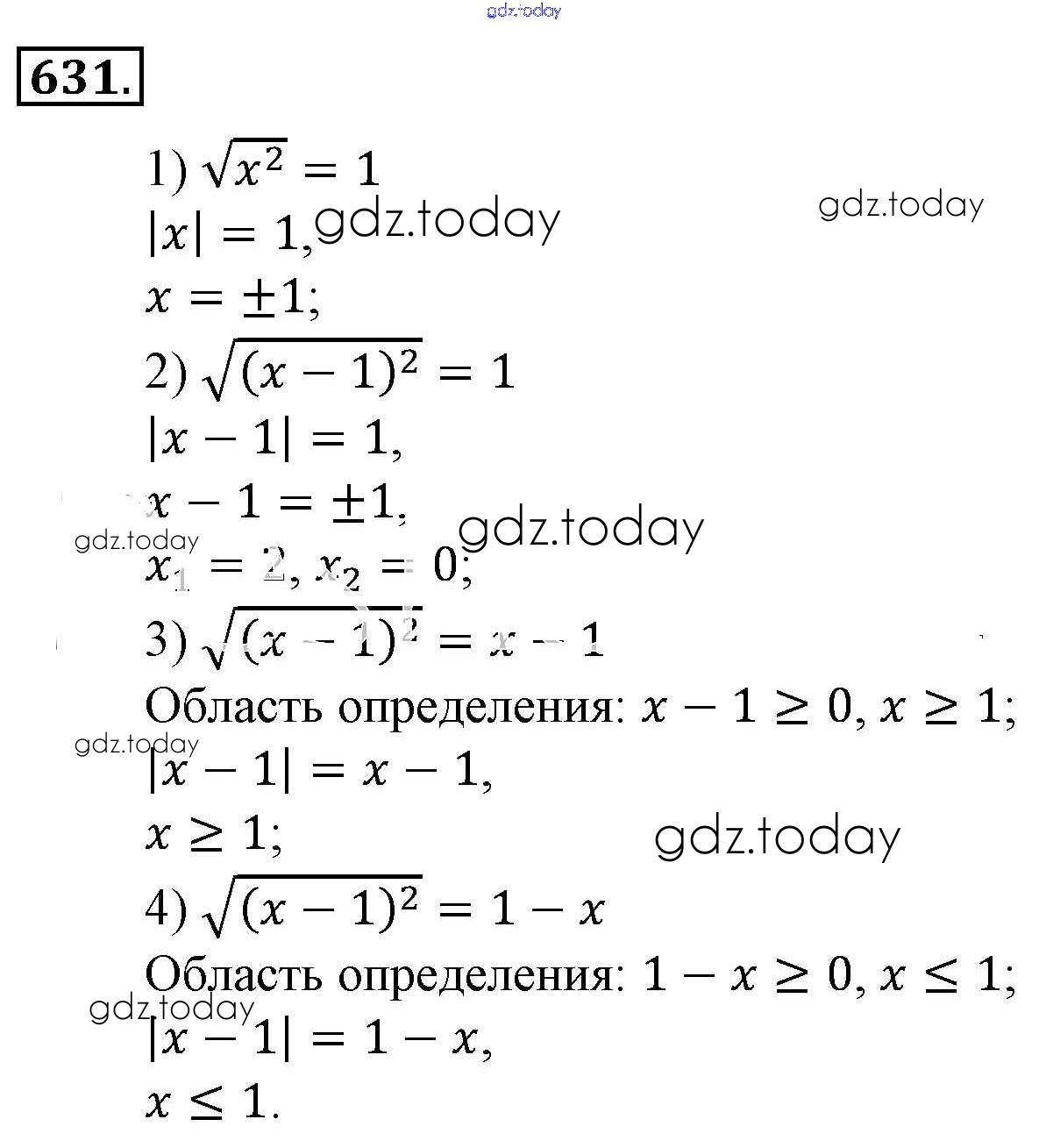 Ответы к Решение к упражнениям 631 Учебнику по Алгебре для 9 класса Алимов, Колягин Просвещение 2014