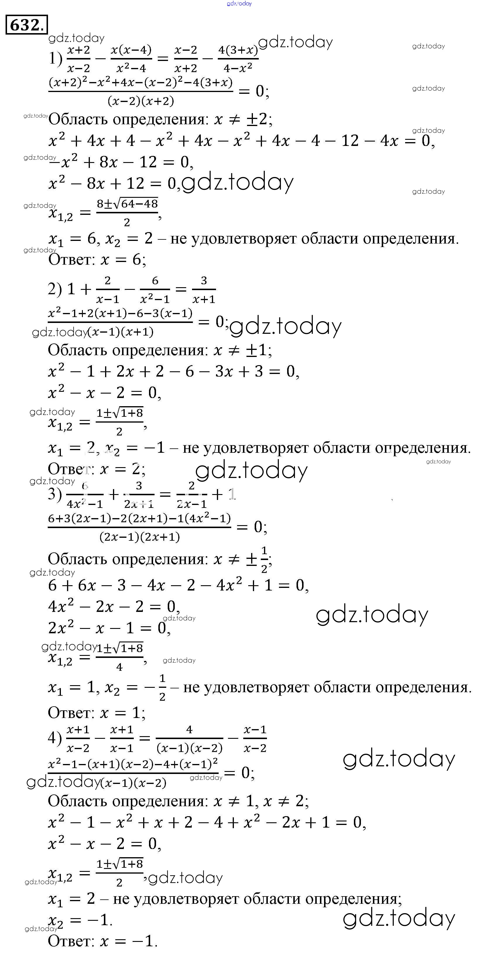 На страницах сайта gdz.today вы найдете учебный и вспомогательный материал, направленный на улучшения знаний школьной программы. ГДЗ - онлайн мир знаний Решение к упражнениям 632 Учебнику по Алгебре для 9 класса Алимов, Колягин Просвещение 2014
