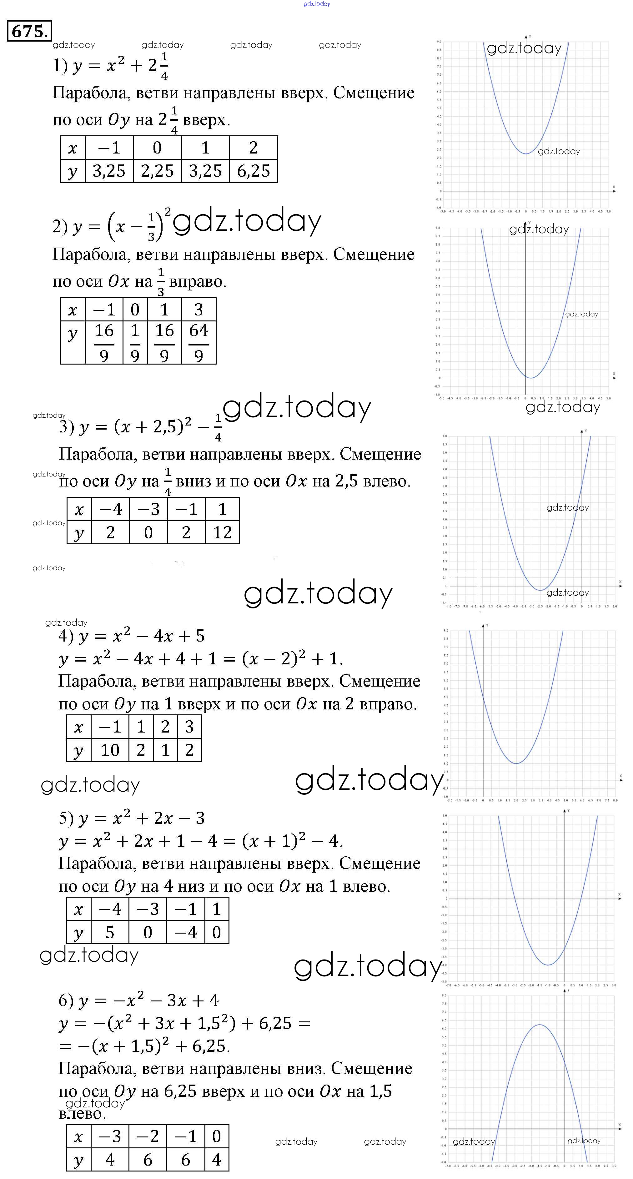Ответы к Решение к упражнениям 675 Учебнику по Алгебре для 9 класса Алимов, Колягин Просвещение 2014