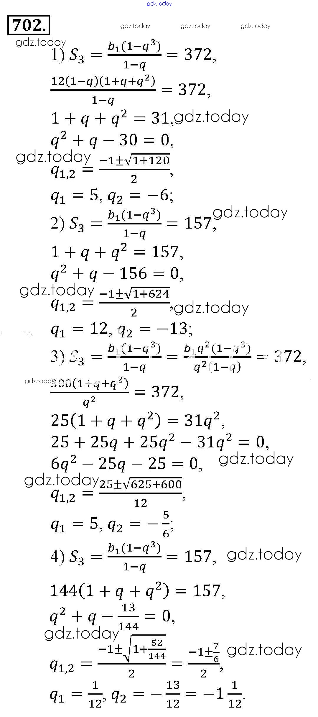 Ответы к Решение к упражнениям 702 Учебнику по Алгебре для 9 класса Алимов, Колягин Просвещение 2014