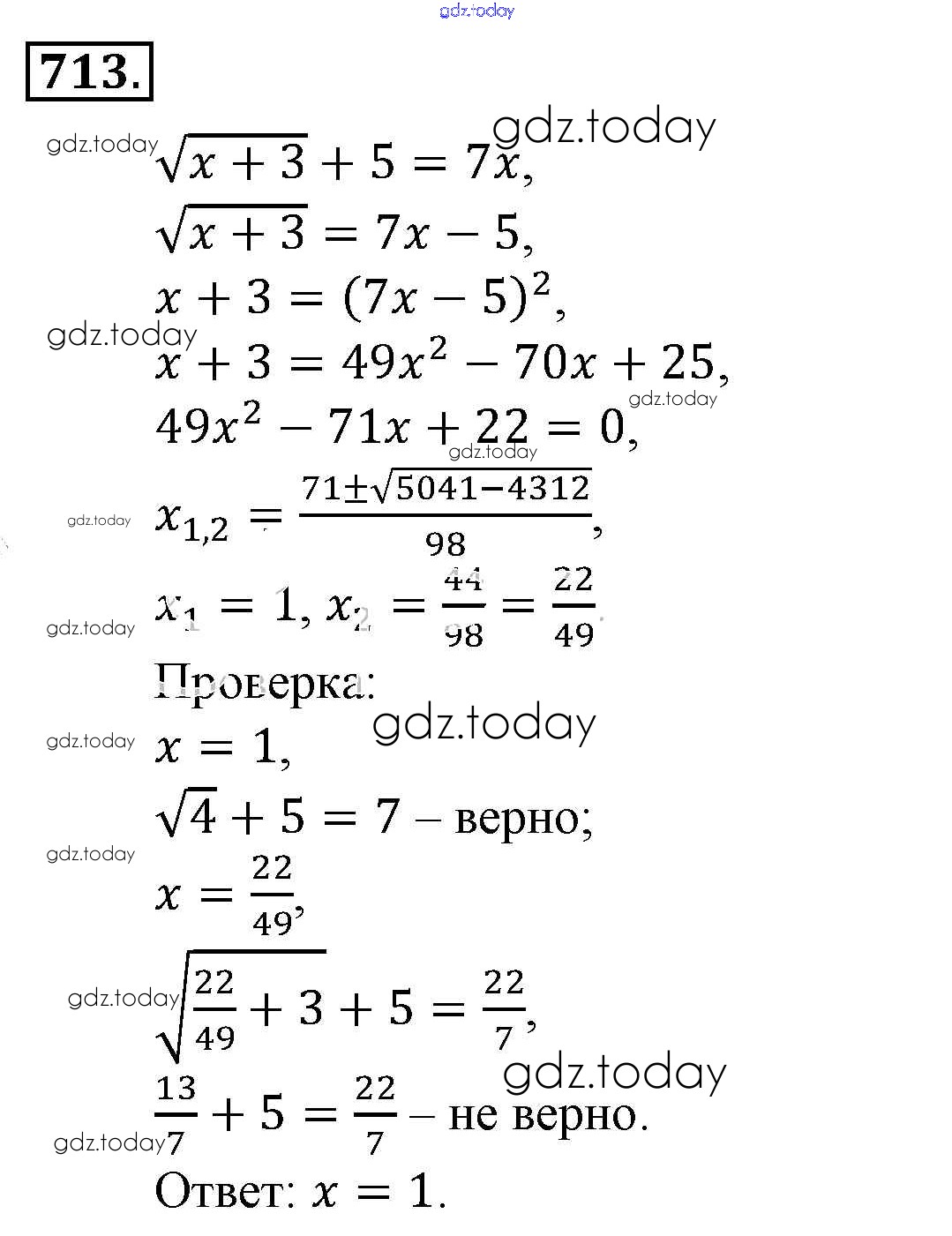 Ответы к Решение к упражнениям 713 Учебнику по Алгебре для 9 класса Алимов, Колягин Просвещение 2014