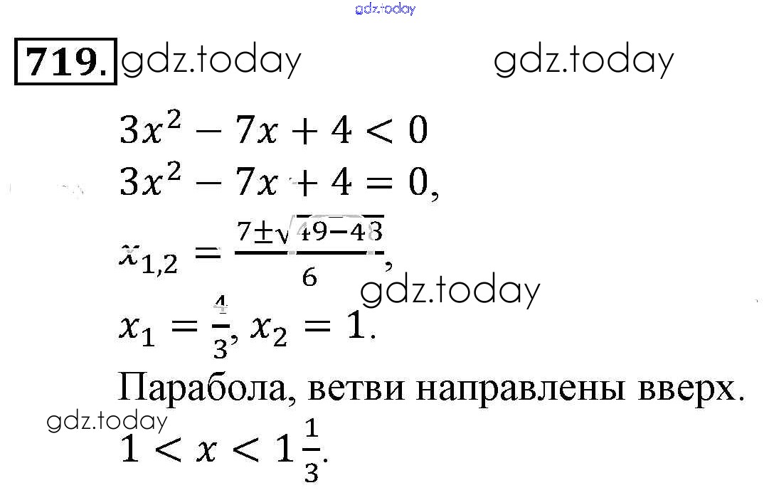 На страницах сайта gdz.today вы найдете учебный и вспомогательный материал, направленный на улучшения знаний школьной программы. ГДЗ - онлайн мир знаний Решение к упражнениям 719 Учебнику по Алгебре для 9 класса Алимов, Колягин Просвещение 2014