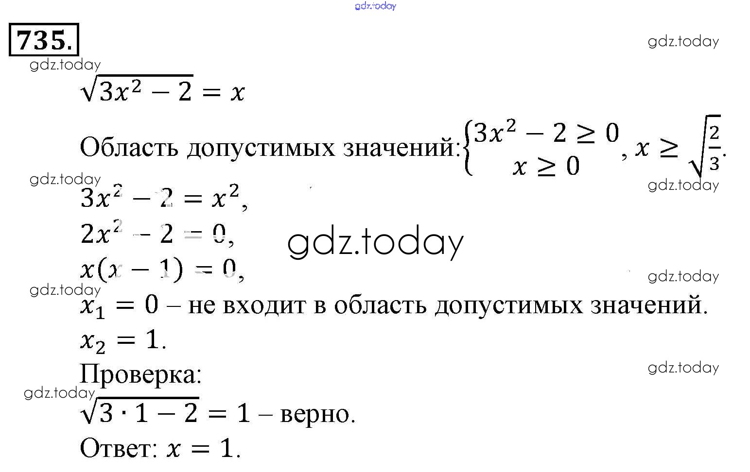 Ответы к Решение к упражнениям 735 Учебнику по Алгебре для 9 класса Алимов, Колягин Просвещение 2014