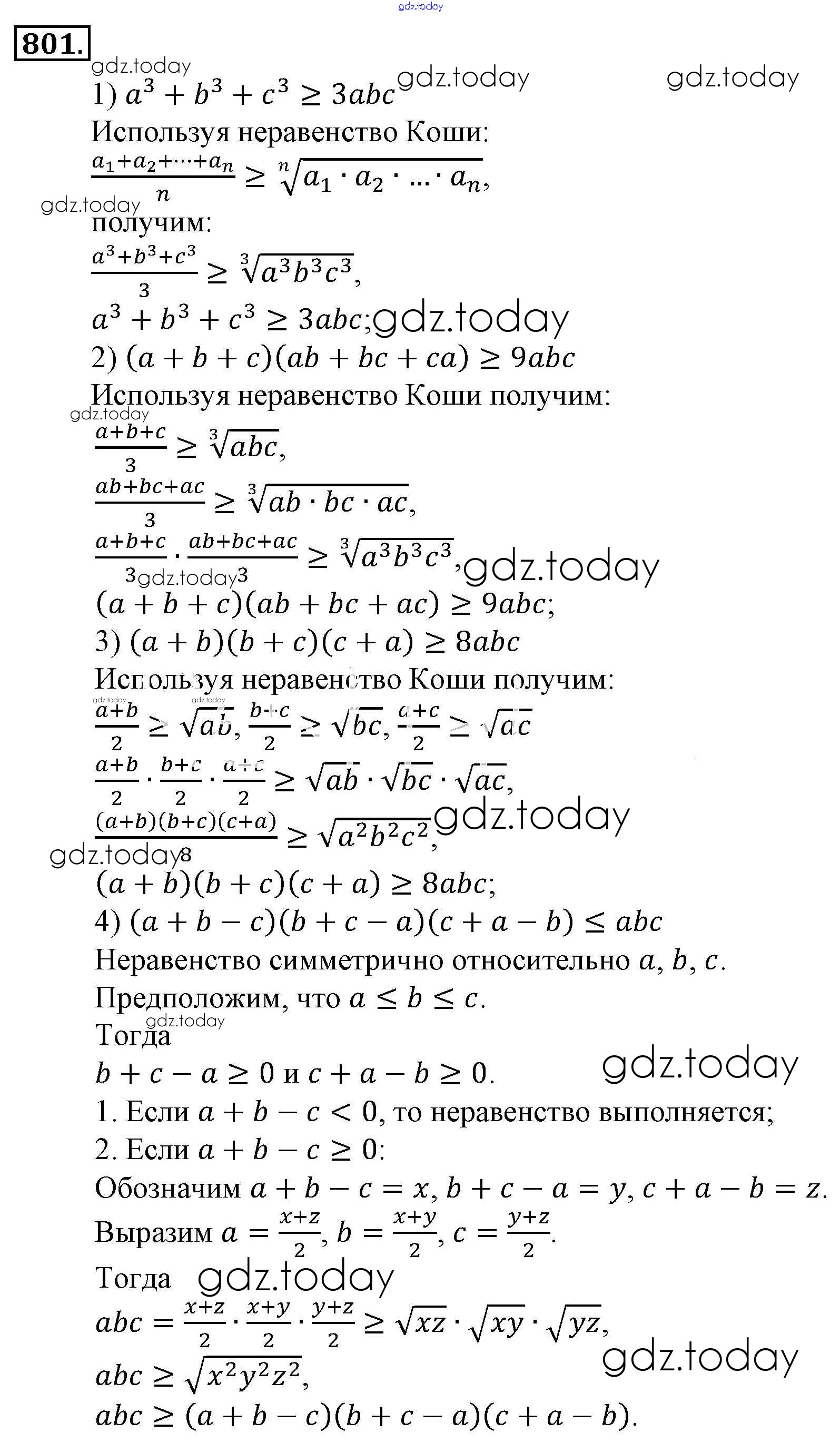 Ответы к Решение к упражнениям 801 Учебнику по Алгебре для 9 класса Алимов, Колягин Просвещение 2014