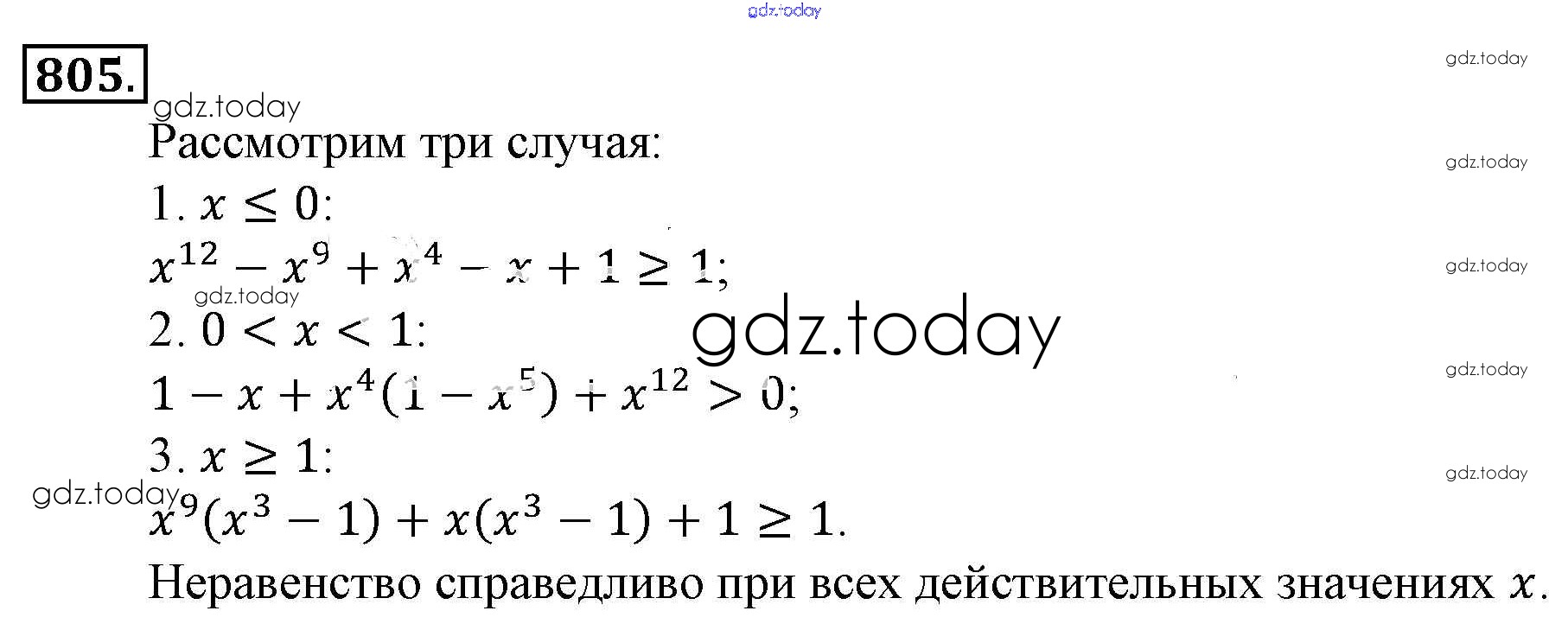 Ответы к Решение к упражнениям 805 Учебнику по Алгебре для 9 класса Алимов, Колягин Просвещение 2014