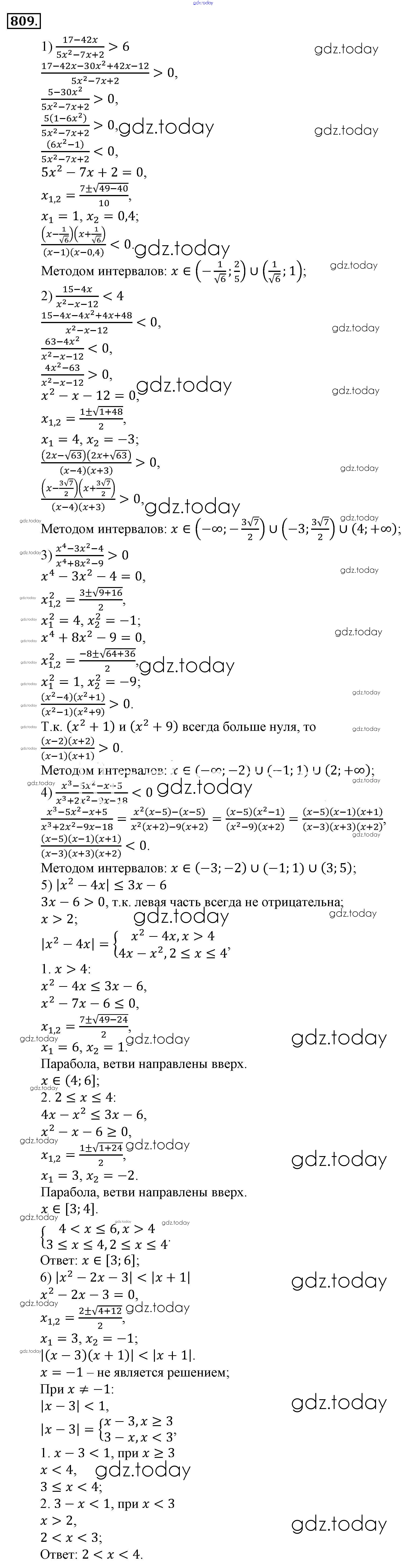 Ответы к Решение к упражнениям 809 Учебнику по Алгебре для 9 класса Алимов, Колягин Просвещение 2014