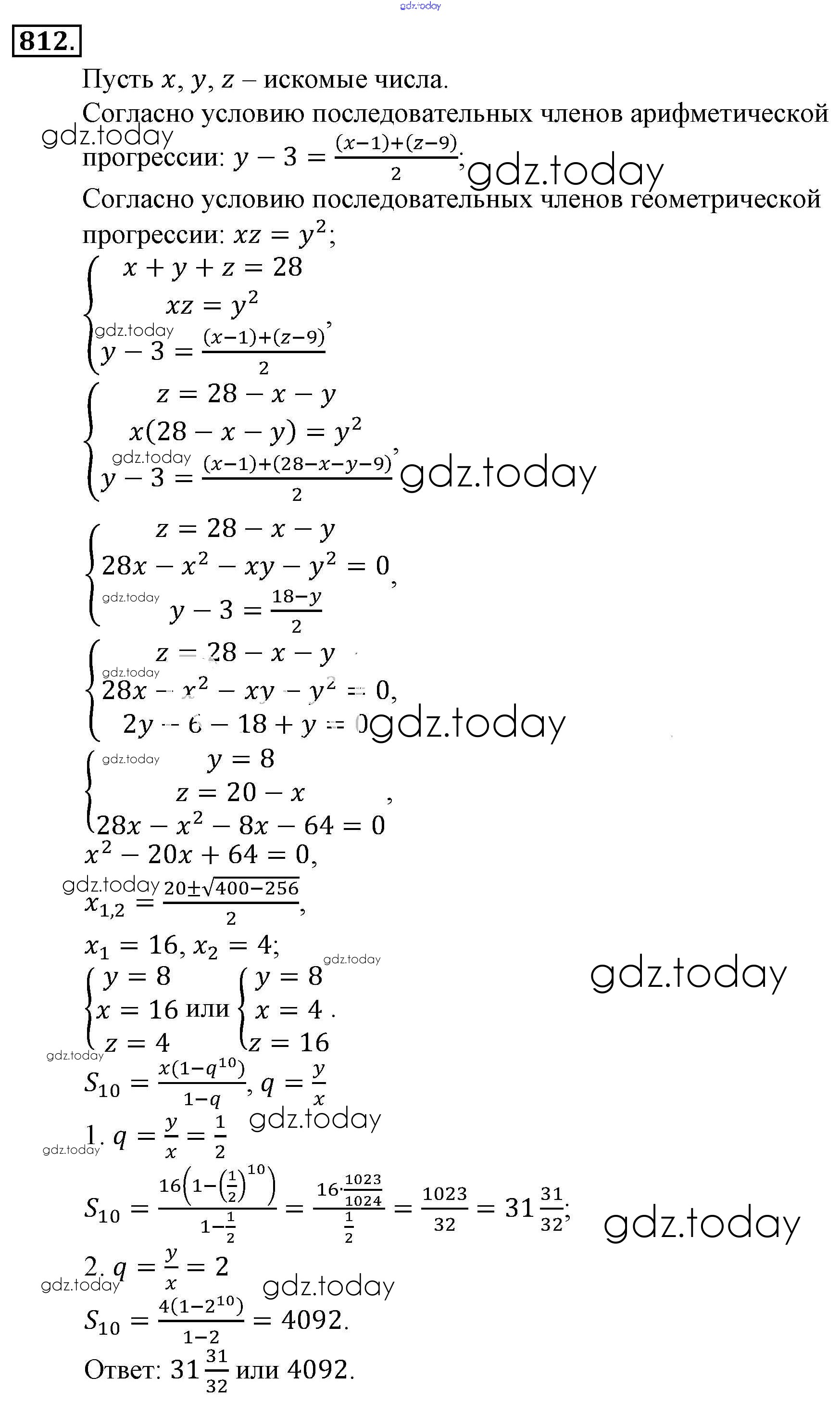 Ответы к Решение к упражнениям 812 Учебнику по Алгебре для 9 класса Алимов, Колягин Просвещение 2014