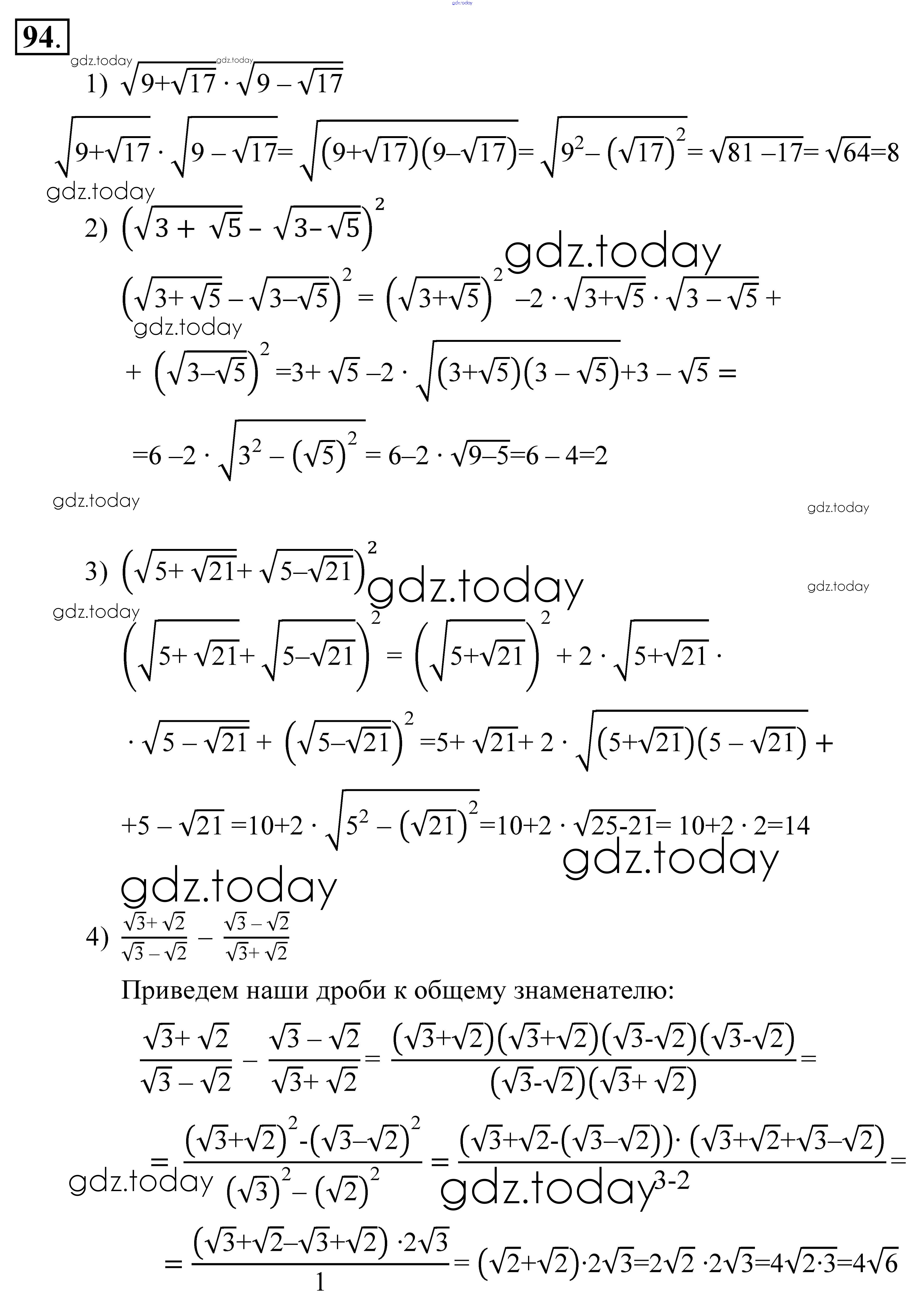 На страницах сайта gdz.today вы найдете учебный и вспомогательный материал, направленный на улучшения знаний школьной программы. ГДЗ - онлайн мир знаний Решение к упражнениям 94 Учебнику по Алгебре для 9 класса Алимов, Колягин Просвещение 2014