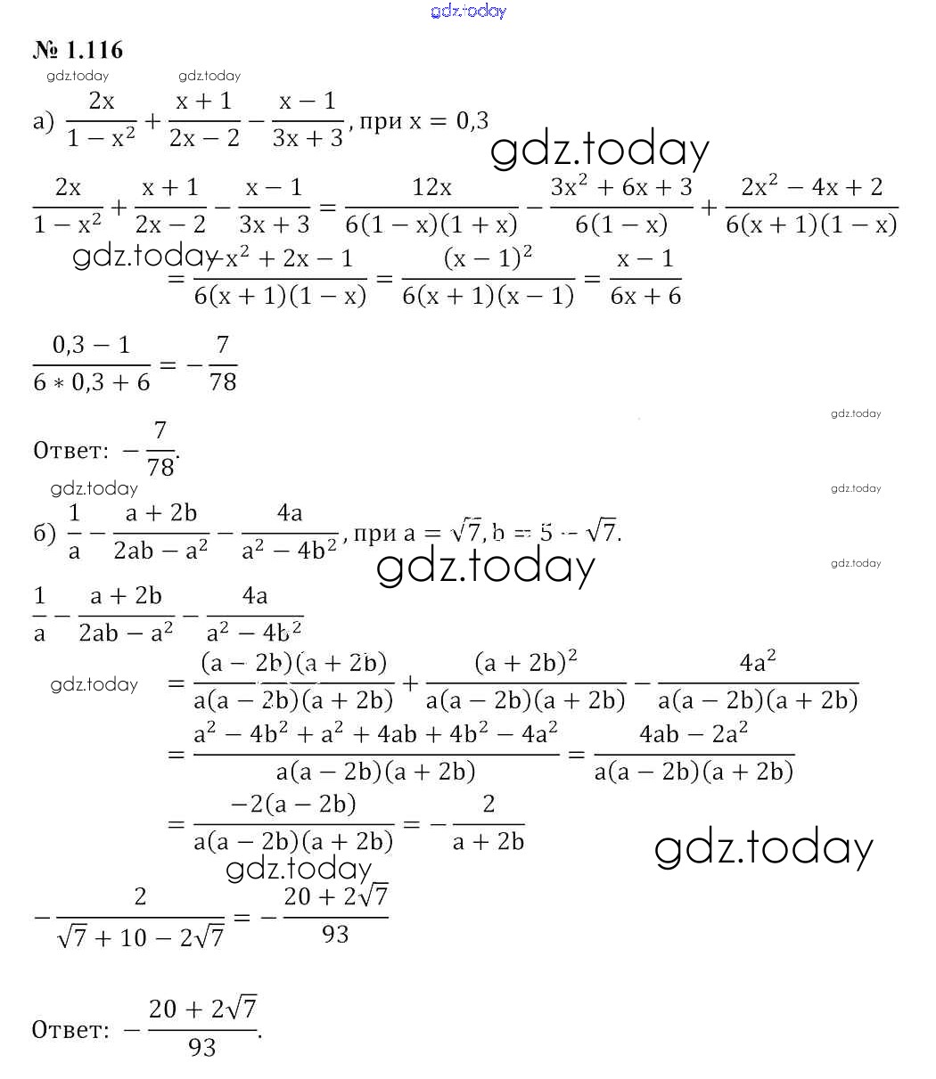 Ответы к Задания Решение к главе 1 1.116 Учебнику по Алгебре для 9 класса Арефьева, Пирютко Народная асвета 2019