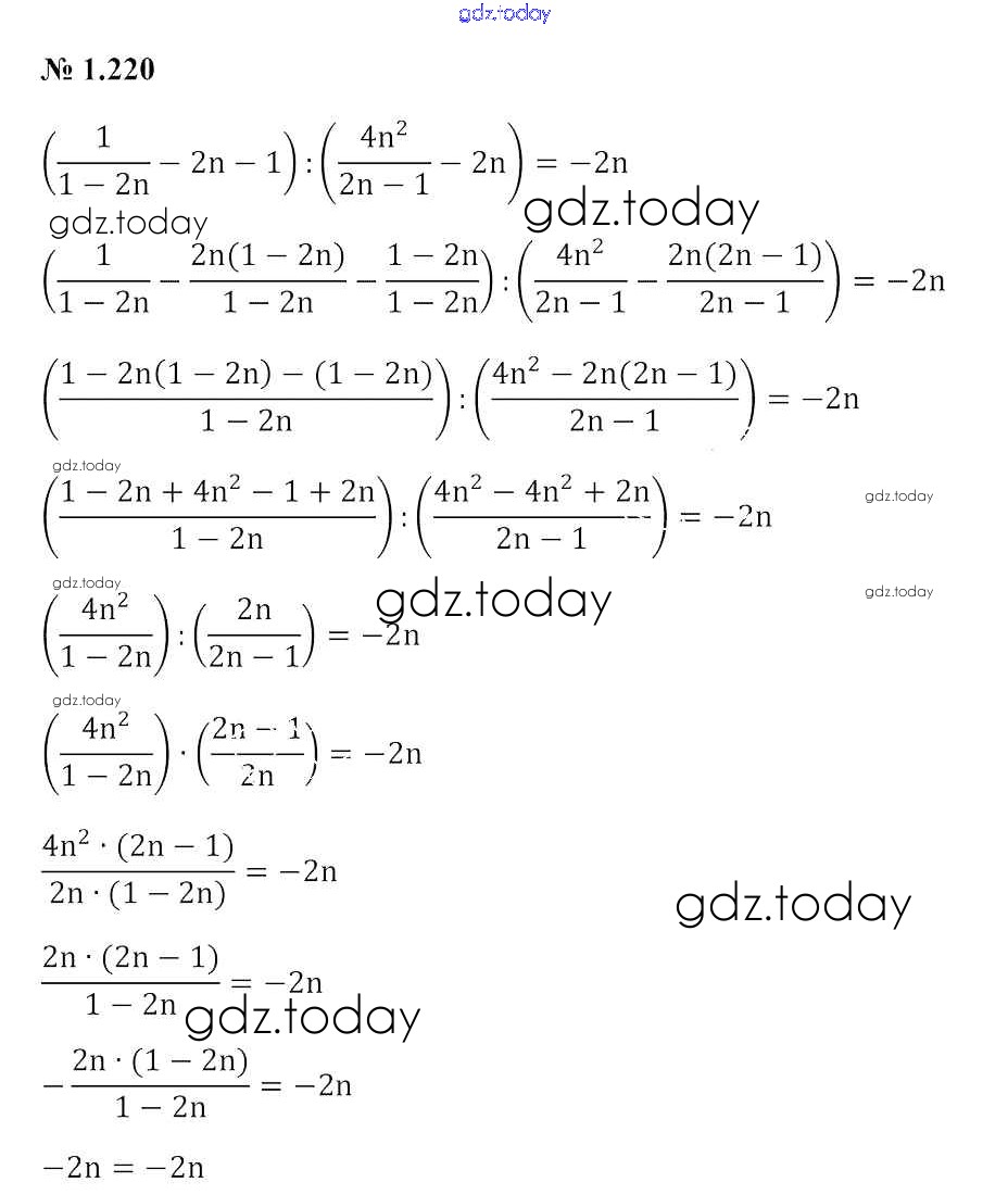 Ответы к Задания Решение к главе 1 1.220 Учебнику по Алгебре для 9 класса Арефьева, Пирютко Народная асвета 2019