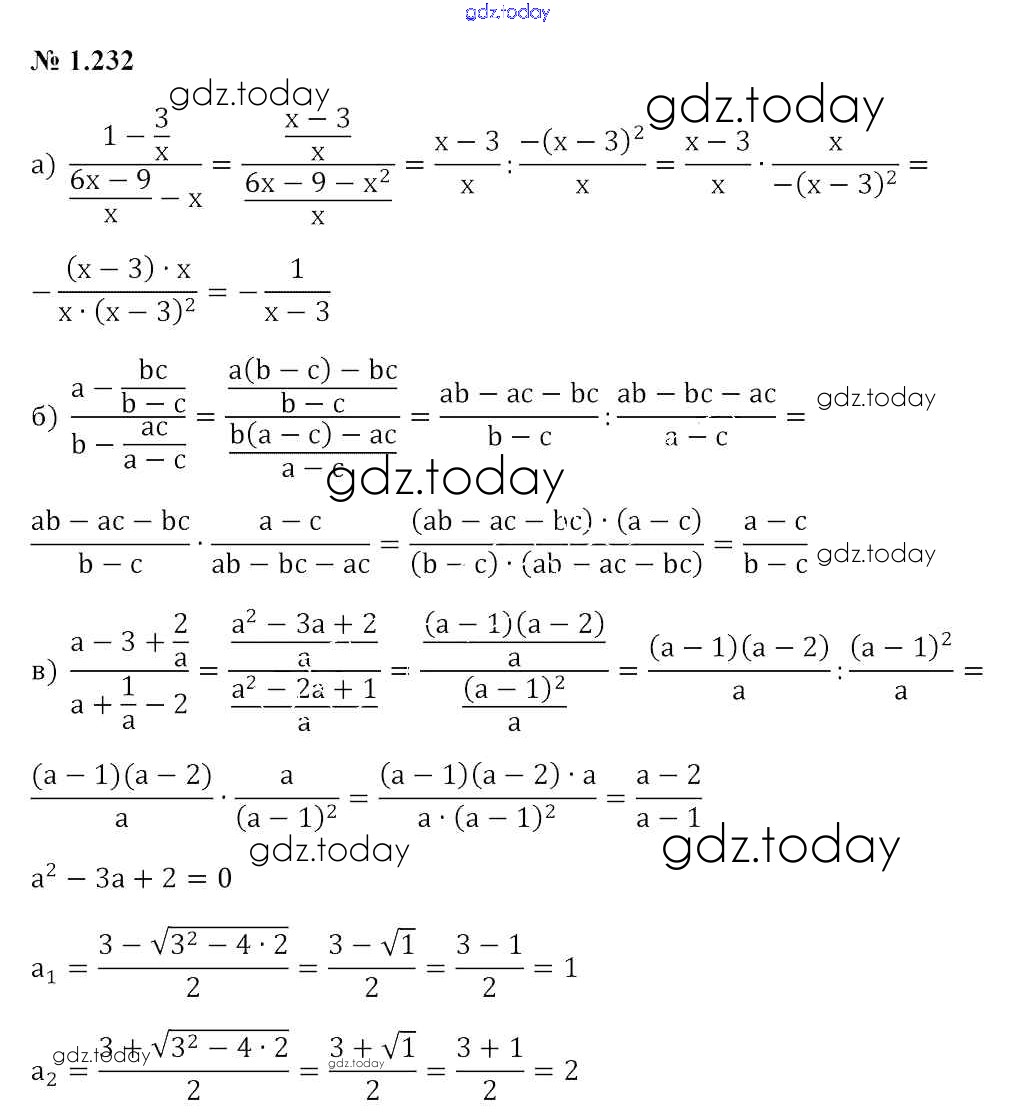 Ответы к Задания Решение к главе 1 1.232 Учебнику по Алгебре для 9 класса Арефьева, Пирютко Народная асвета 2019