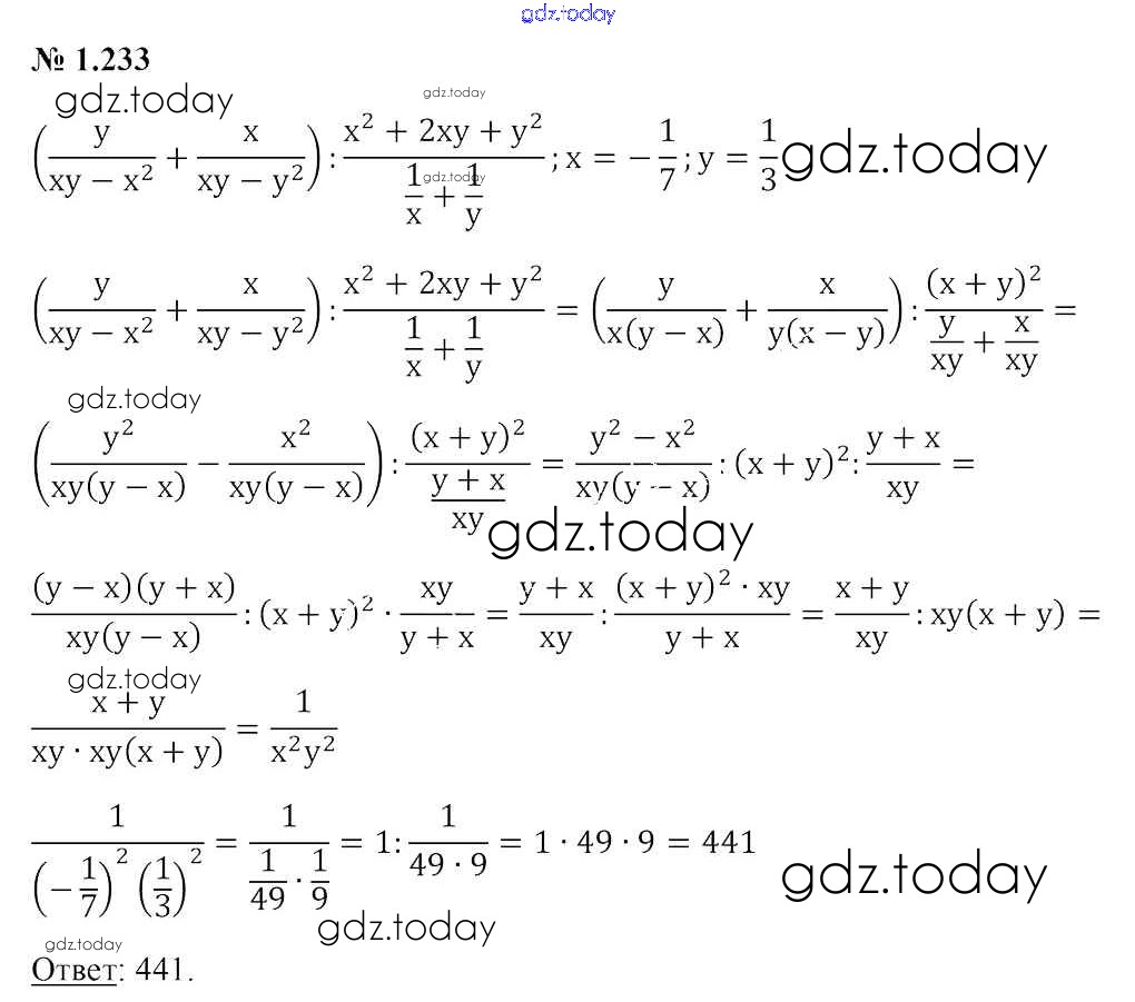 Ответы к Задания Решение к главе 1 1.233 Учебнику по Алгебре для 9 класса Арефьева, Пирютко Народная асвета 2019