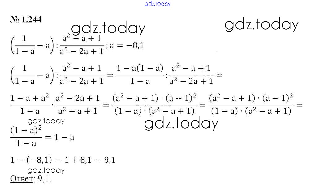 Ответы к Задания Решение к главе 1 1.244 Учебнику по Алгебре для 9 класса Арефьева, Пирютко Народная асвета 2019