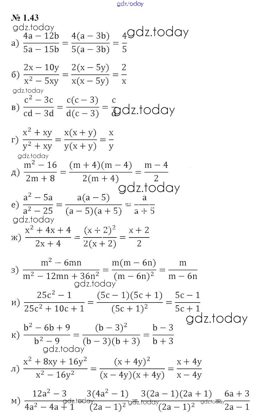 Ответы к Задания Решение к главе 1 1.43 Учебнику по Алгебре для 9 класса Арефьева, Пирютко Народная асвета 2019
