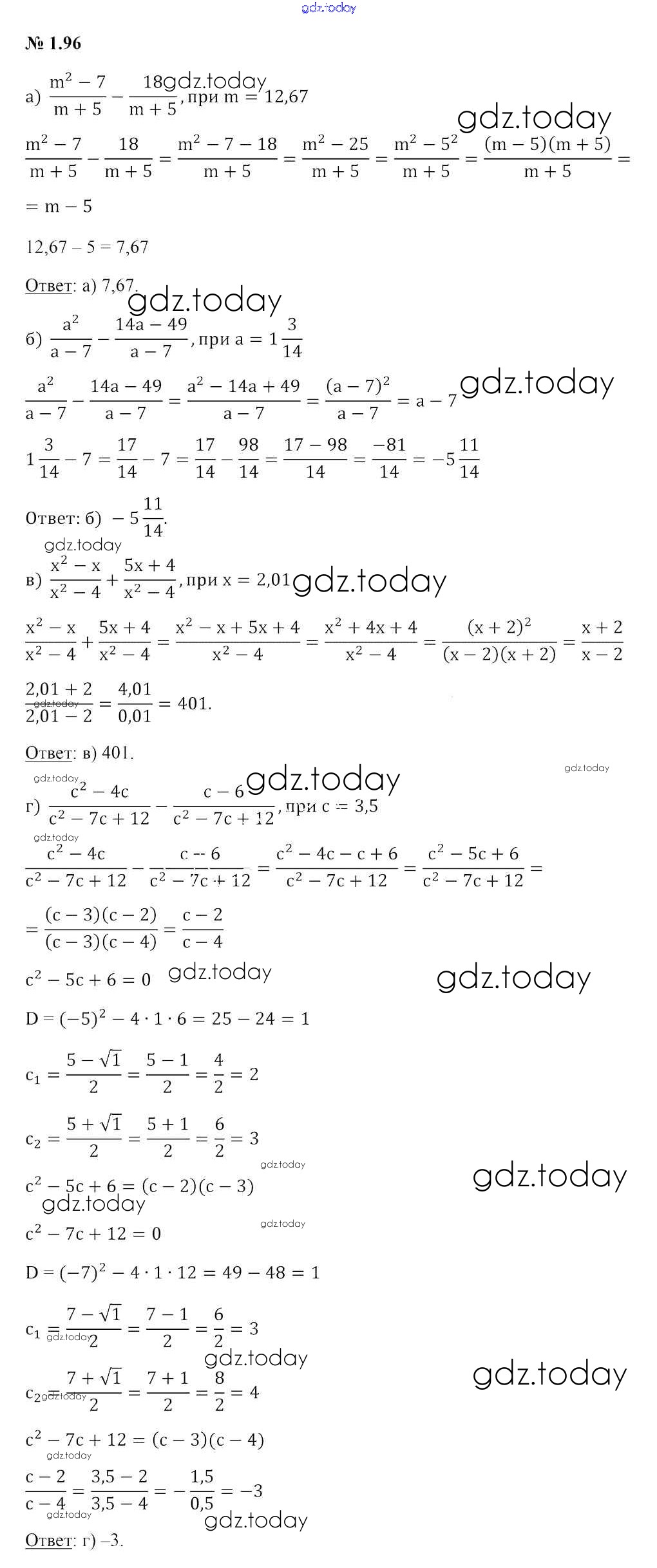 Ответы к Задания Решение к главе 1 1.96 Учебнику по Алгебре для 9 класса Арефьева, Пирютко Народная асвета 2019