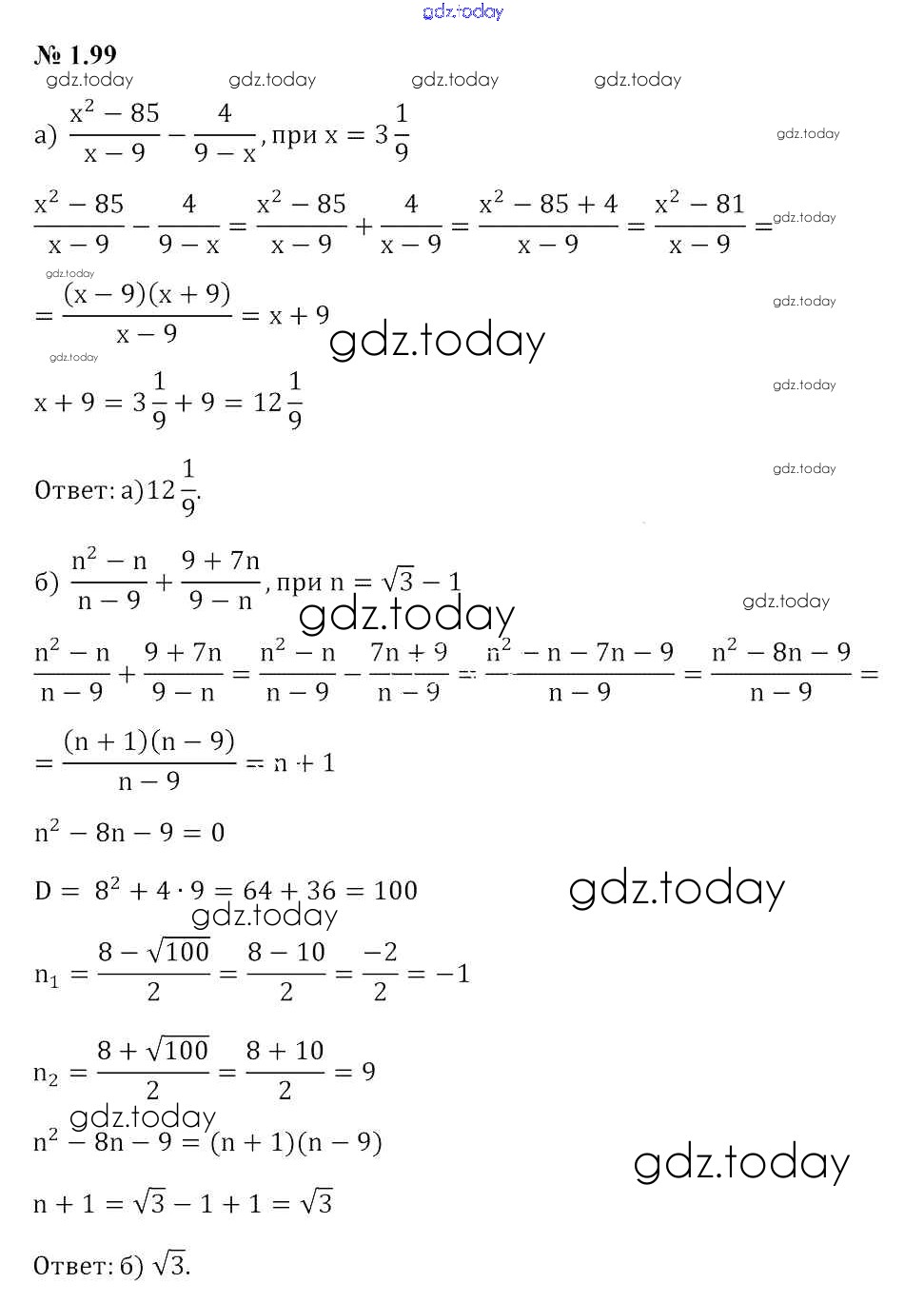 На страницах сайта gdz.today вы найдете учебный и вспомогательный материал, направленный на улучшения знаний школьной программы. ГДЗ - онлайн мир знаний Задания Решение к главе 1 1.99 Учебнику по Алгебре для 9 класса Арефьева, Пирютко Народная асвета 2019