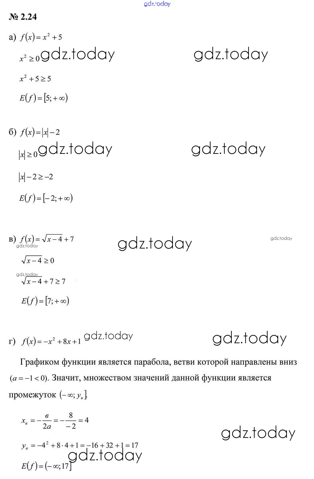 На страницах сайта gdz.today вы найдете учебный и вспомогательный материал, направленный на улучшения знаний школьной программы. ГДЗ - онлайн мир знаний Задания Решение к главе 2 2.24 Учебнику по Алгебре для 9 класса Арефьева, Пирютко Народная асвета 2019